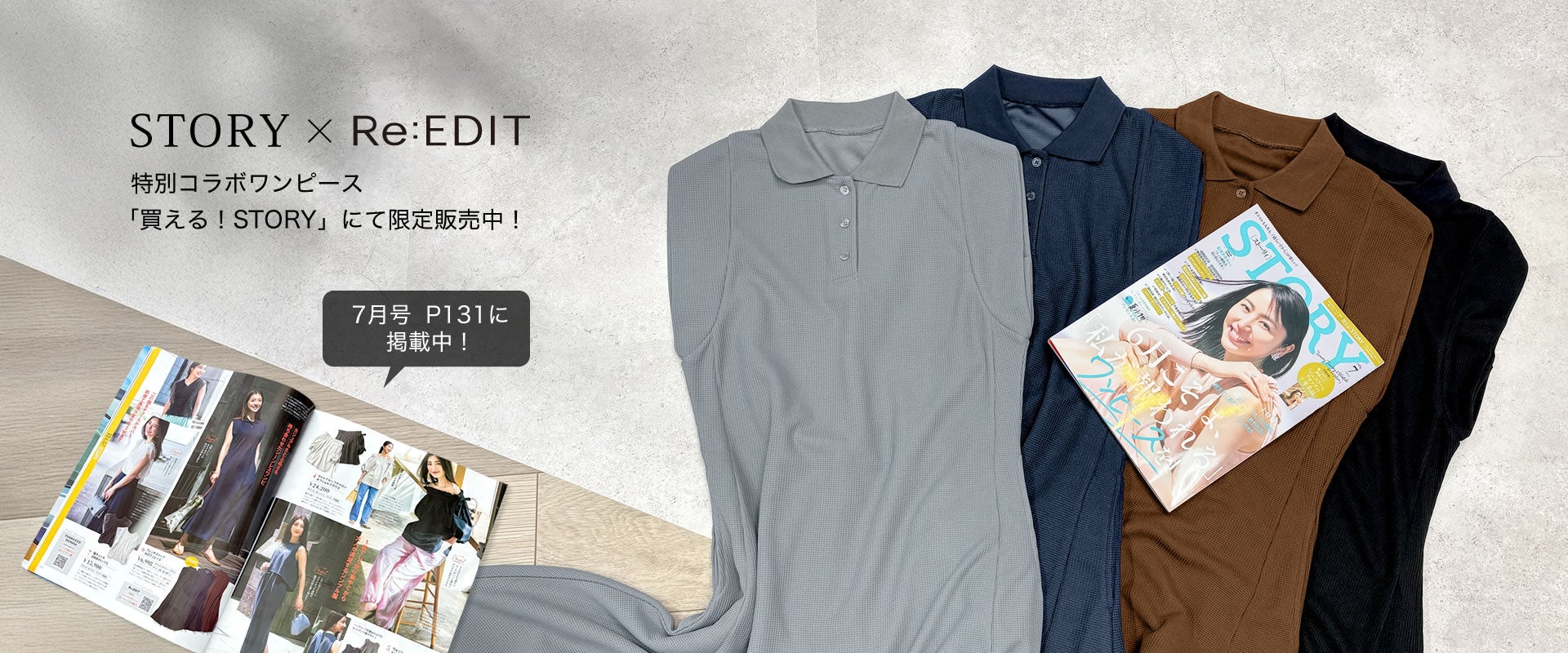 【Re:EDIT(リエディ)】『STORY』とのコラボアイテムが販売スタート!40代の悩みに寄り添い”今欲しい”を叶える「買えるSTORY!」にてフレンチスリーブポロワンピースを発売中