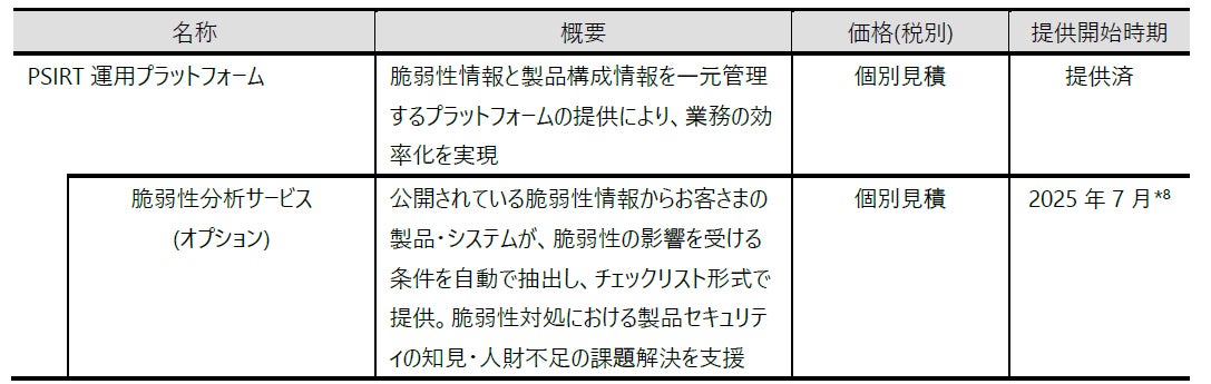 *8 ・本サービスの利用はPSIRT運用プラットフォームの構築が必須のため、PSIRT運用プラットフォームの構築期間を含みます。