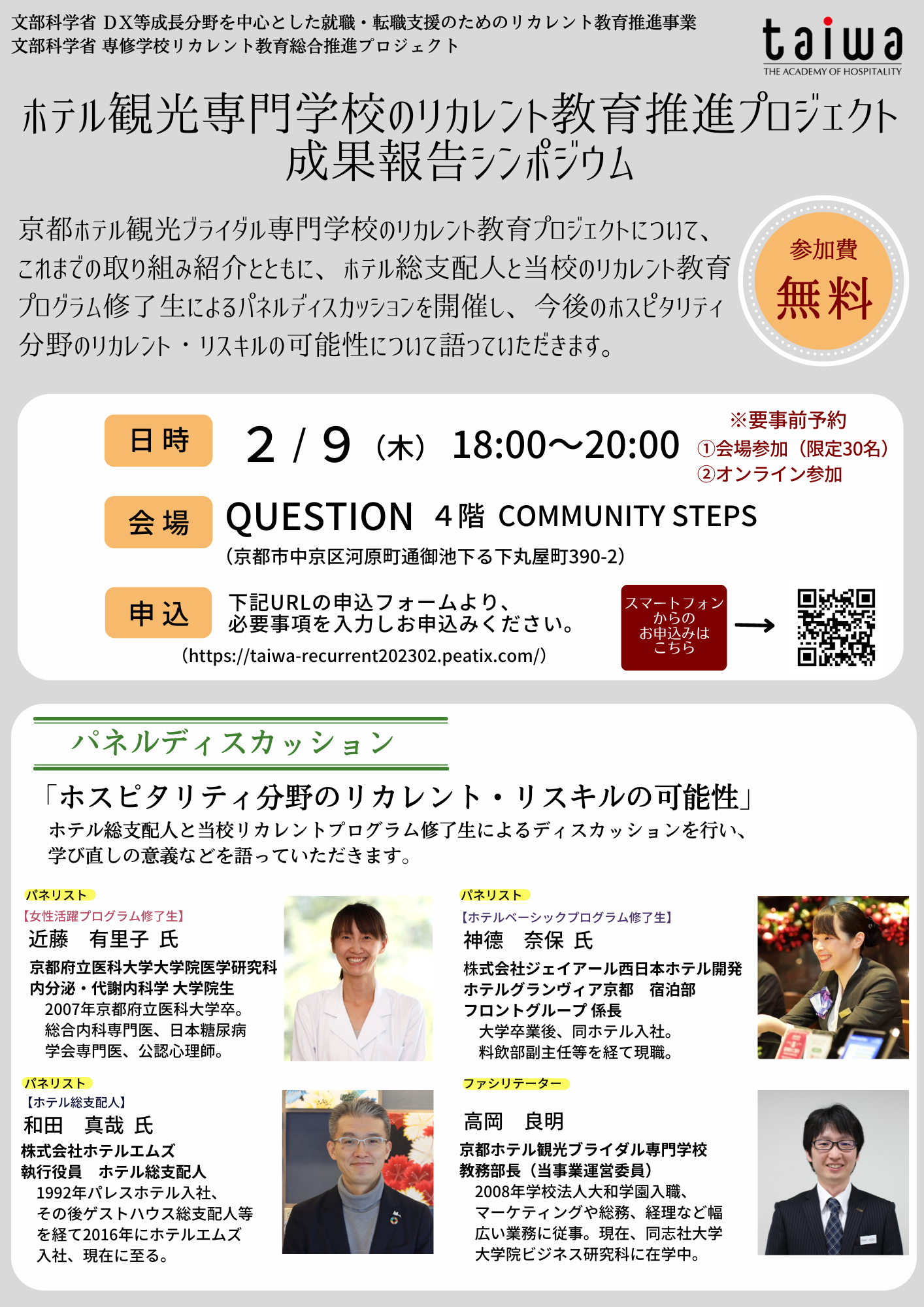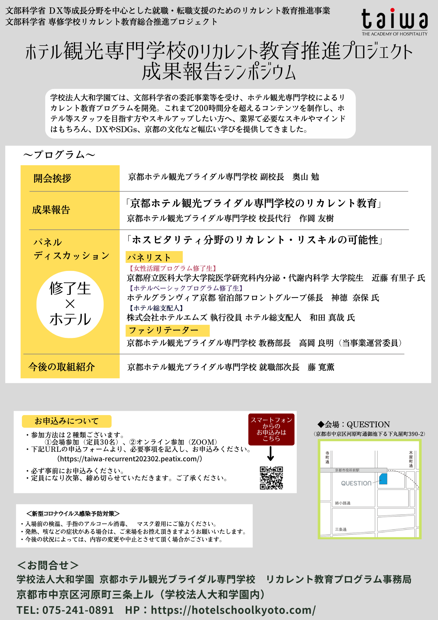 京都ホテル観光ブライダル専門学校が令和4年度リカレント教育プログラムの成果報告シンポジウムを開催!