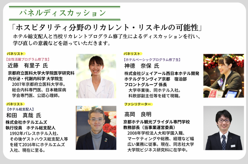 ホテル総支配人と当校リカレント教育プログラム修了生によるパネルディスカッションを開催します。