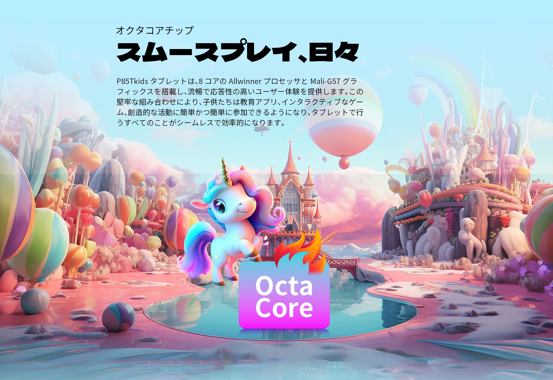 P85Tkidsタブレットは、8コアのAllwinnerプロセッサとMali-G57グラフィックスを搭載し、流暢で応答性の高いユーザー体験を提供します。この堅牢な組み合わせにより、子供たちは教育アプリ、インタラクティブなゲーム、創造的な活動に簡単かつ簡単に参加できるようになり、タブレットで行うすべてのことがシームレスで効率的になります。
