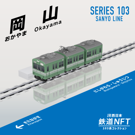 - 『JR西日本 鉄道NFT 103系コレクション』は、3DフィギュアになったJR西日本の103系が、駅で使用されるメロディ(通称:駅メロ)とともに線路を走る全8種のコレクション型NFTです。