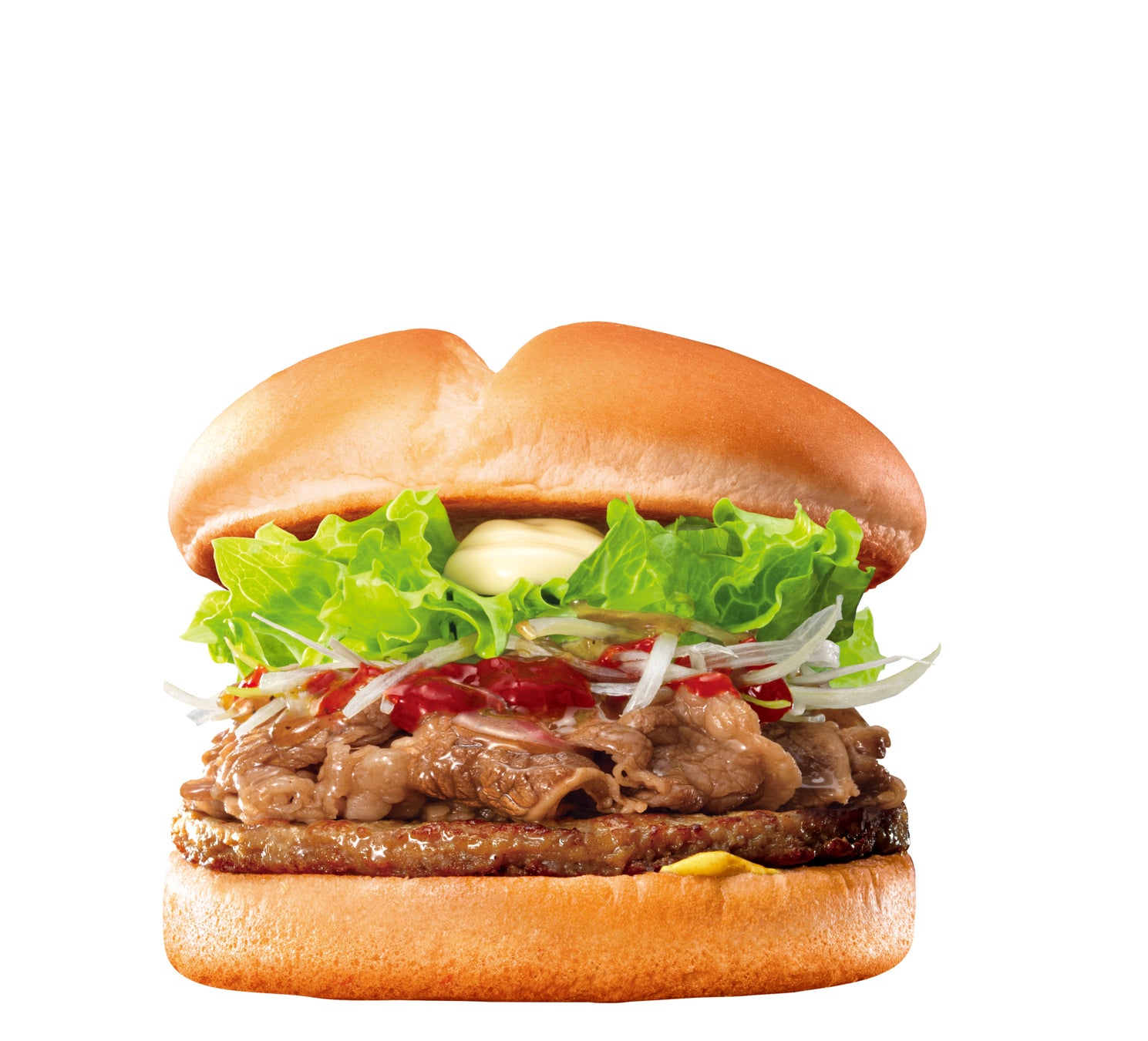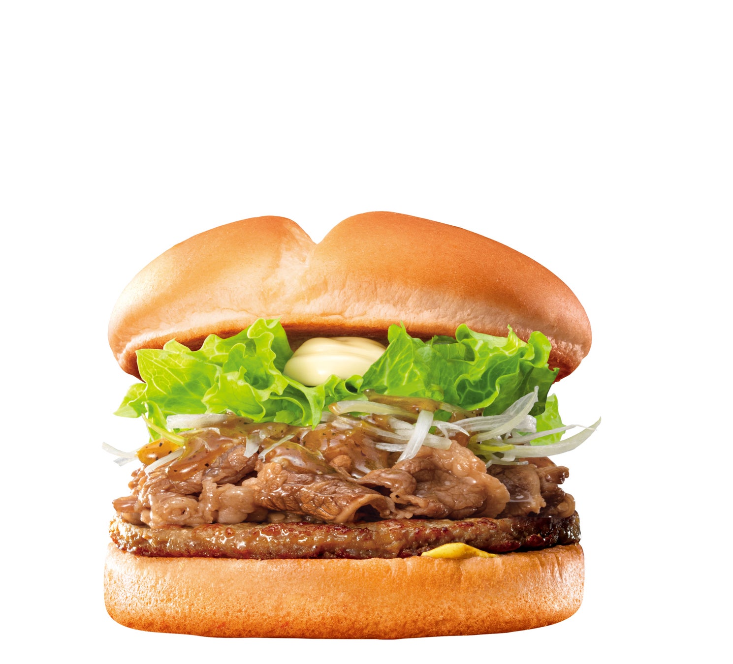商品概要:ハンバーグパティに、レモンが香る爽やかな塩だれで味付けした牛カルビ肉をトッピングし、白髪ネギ、レタス、マスタード、マヨネーズとともにふっくらなめらかな食感のバンズで挟みました。シャキシャキ食感の白髪ネギとレモンの程よい酸味が際立つ牛カルビは相性抜群で、夏にぴったりの味わいです。