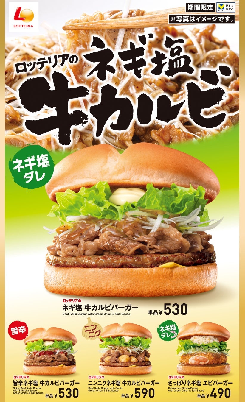 【ロッテリア】“ネギ塩×ジューシーな牛カルビ”が夏本番にぴったりロッテリア「ネギ塩 牛カルビバーガー」7月4日(木)から期間限定で販売!