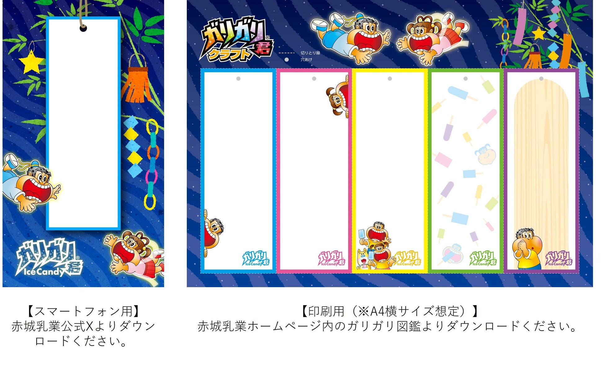 また、夏をガリガリ君と楽しんでいただく企画として、赤城乳業ホームページ内のガリガリ図鑑(https://akagiice.jp/gari/zukan/)、赤城乳業公式X(@akagi_cp)でダウンロードいただける「ガリガリ君オリジナル短冊」を制作しました。七夕が近づくこの機会に、ぜひ活用ください。