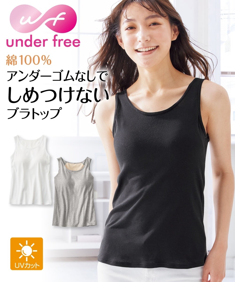 商品名:アンダーフリーコットン 綿100%ブラトップタンクトップ(UVカット)