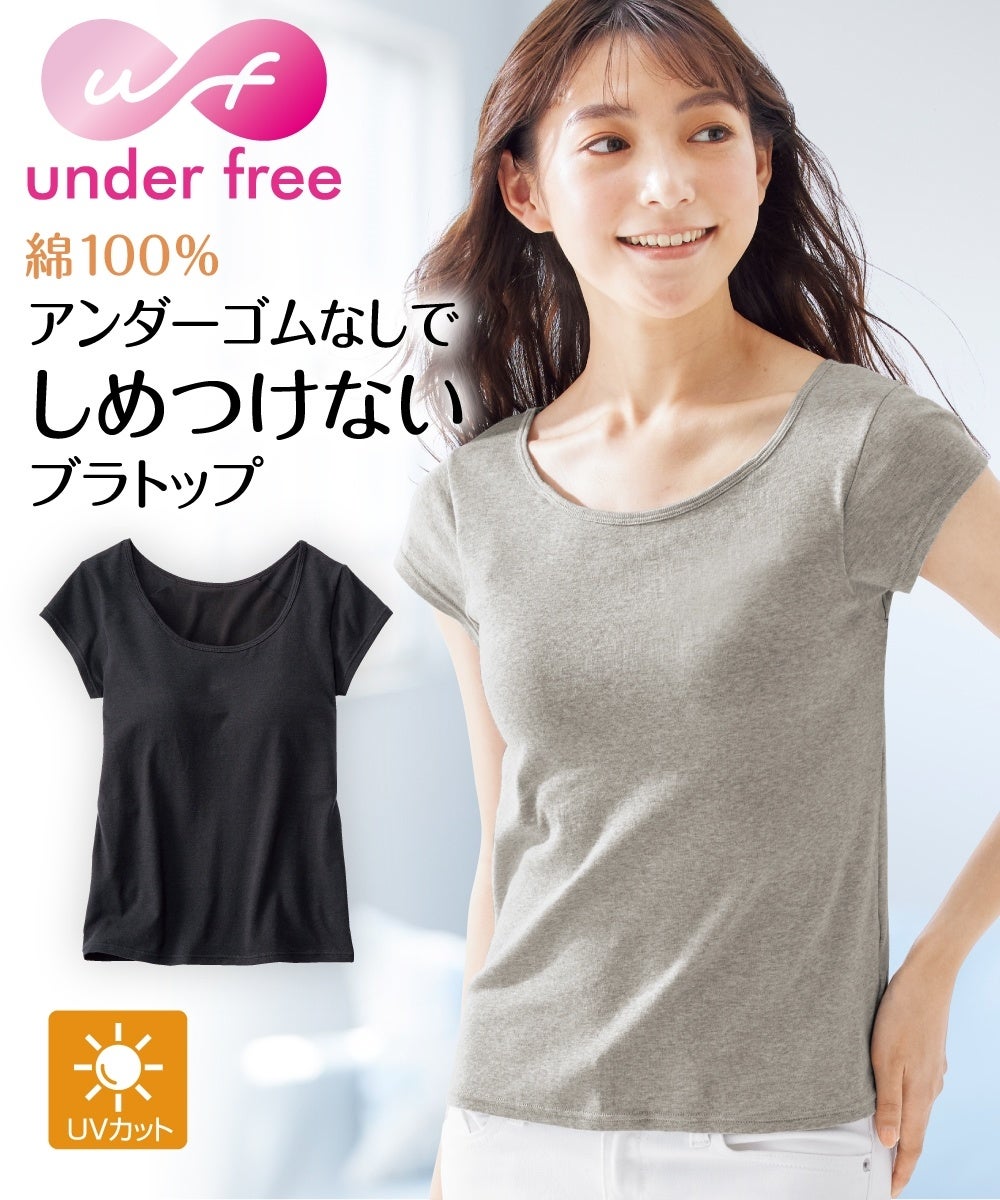 商品名:アンダーフリーコットン 綿100%ブラトップフレンチ袖インナー(UVカット)