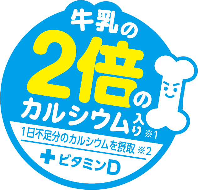 牛乳の2倍のカルシウム※+カルシウムの吸収を促進するビタミンDを配合