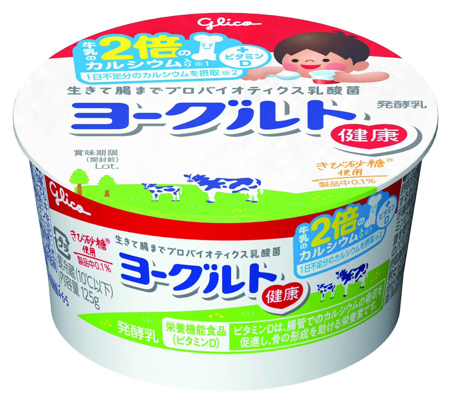 ビタミンDは、腸管でのカルシウムの吸収を促進し、骨の形成を助ける栄養素です。個食タイプの「ヨーグルト健康 125g」には新たにビタミンDを配合し、3個パックの「ヨーグルト健康 70g×3」はビタミンDを増量しました。