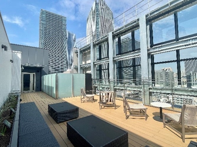 さらに、BIZCOREシリーズの特徴である「屋上庭園」では、Wi-Fiや電源環境を整備し、「ワークスペース」と「コミュニケーションスペース」の2つの空間を設けるなど、各共用部に多様な働き方を支える取り組みを行っております。
