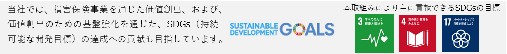 引続き、お客さまにより大きな安心を提供できるよう、社会課題解決への貢献につながるサービスの開発と提供にも、鋭意取組んでまいります。