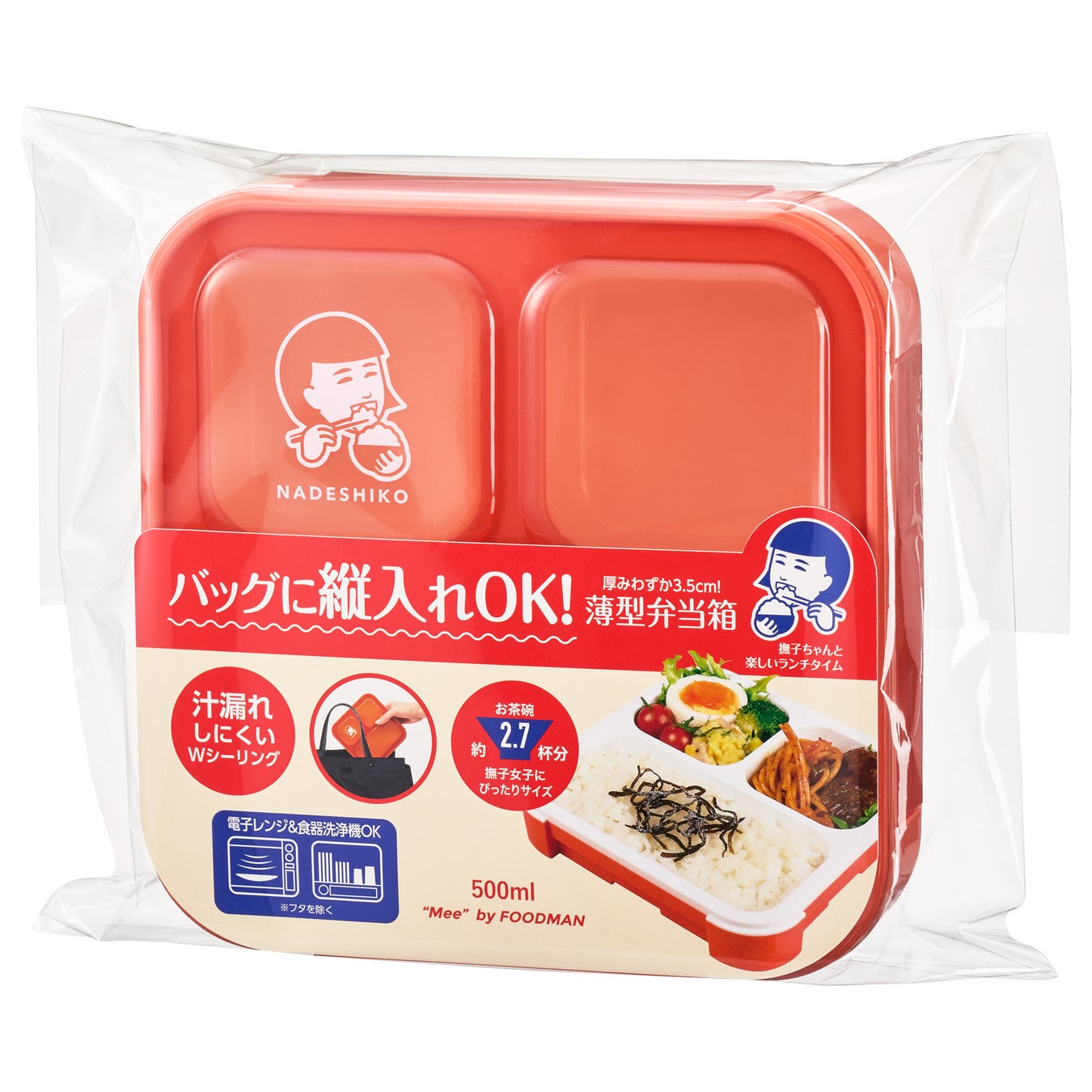 厚さわずか3.5cmでバッグにすっきり収まるスマートなお弁当箱。