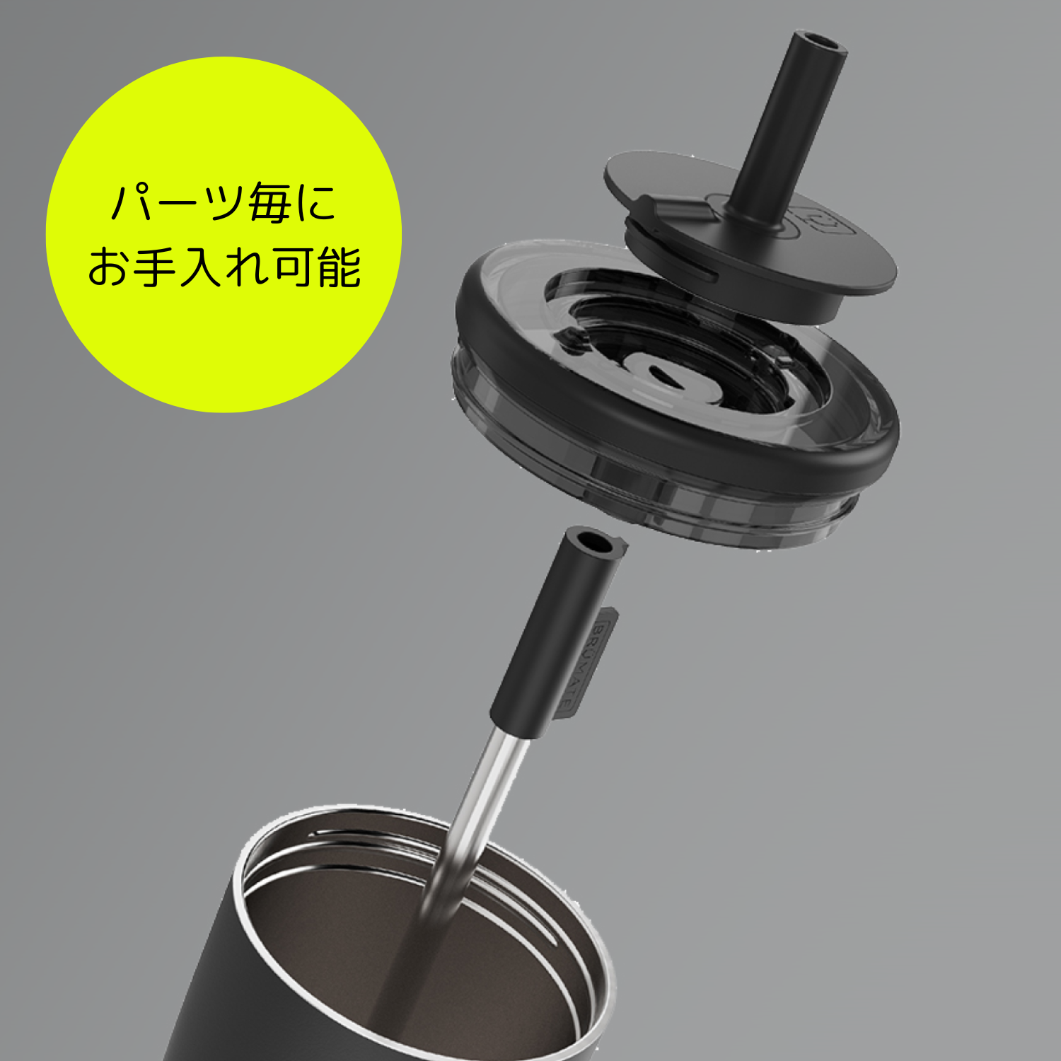 ストローでも漏れる心配なし。米国特許取得中の漏れないオリジナルデザインの蓋搭載