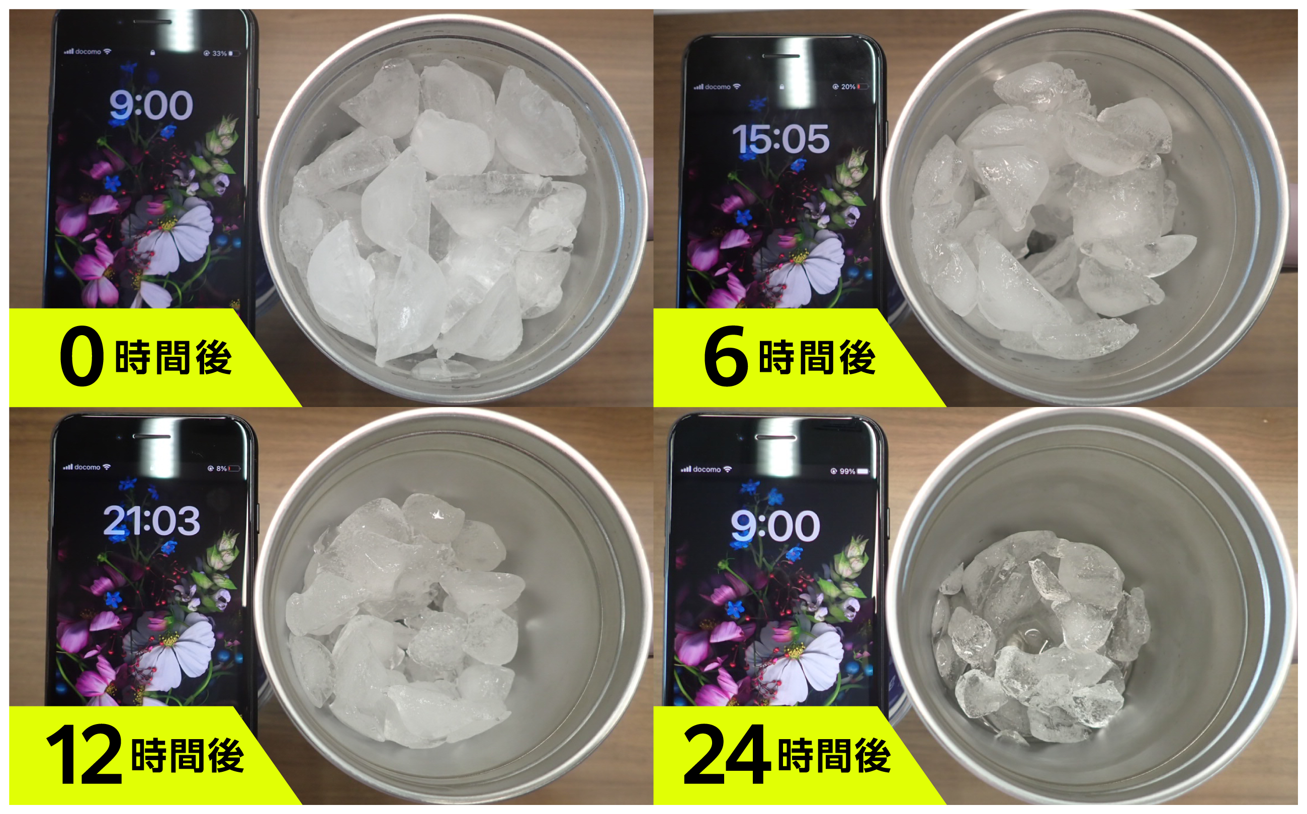 ご覧のように24時間経っても氷が残る高い保冷力が人気の秘密です。