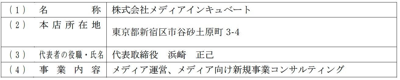 なお、本事業譲受に当たっては、メディアインキュベート代表取締役の浜崎正己氏が当社に参画することを前提としております。
