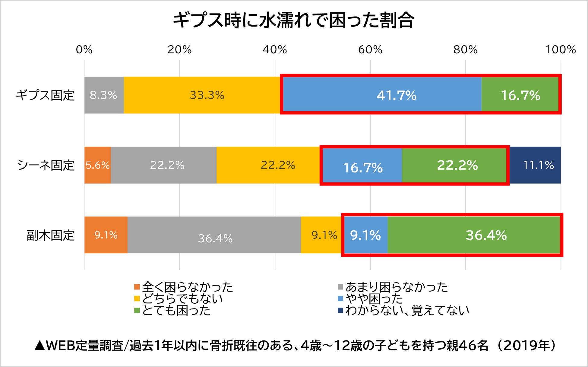 そこで、「ギプス固定中の水濡れ」に関する自社調査※を行った結果、固定している期間に水濡れで困った経験のある方が多くいらっしゃることが分かりました。