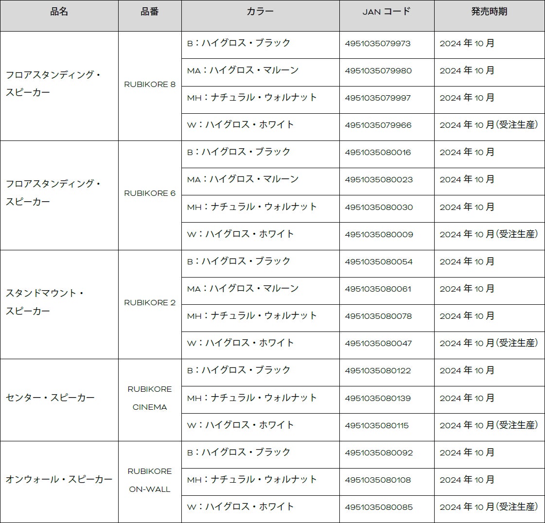 株式会社ディーアンドエムホールディングスは、2024年10月にDALIブランドのスピーカー「RUBIKOREシリーズ」を発売いたします。RUBIKOREシリーズは、フロアスタンディング・スピーカー「RUBIKORE 8」、「RUBIKORE 6」、スタンドマウント・スピーカー「RUBIKORE 2」、センター・スピーカー「RUBIKORE CINEMA」、オンウォール・スピーカー「RUBIKORE ON-WALL」の5モデルで構成されており、仕上げはハイグロス・ブラック、ハイグロス・マルーン、ナチュラル・ウォルナット、ハイグロス・ホワイトの4種から選ぶことができます。