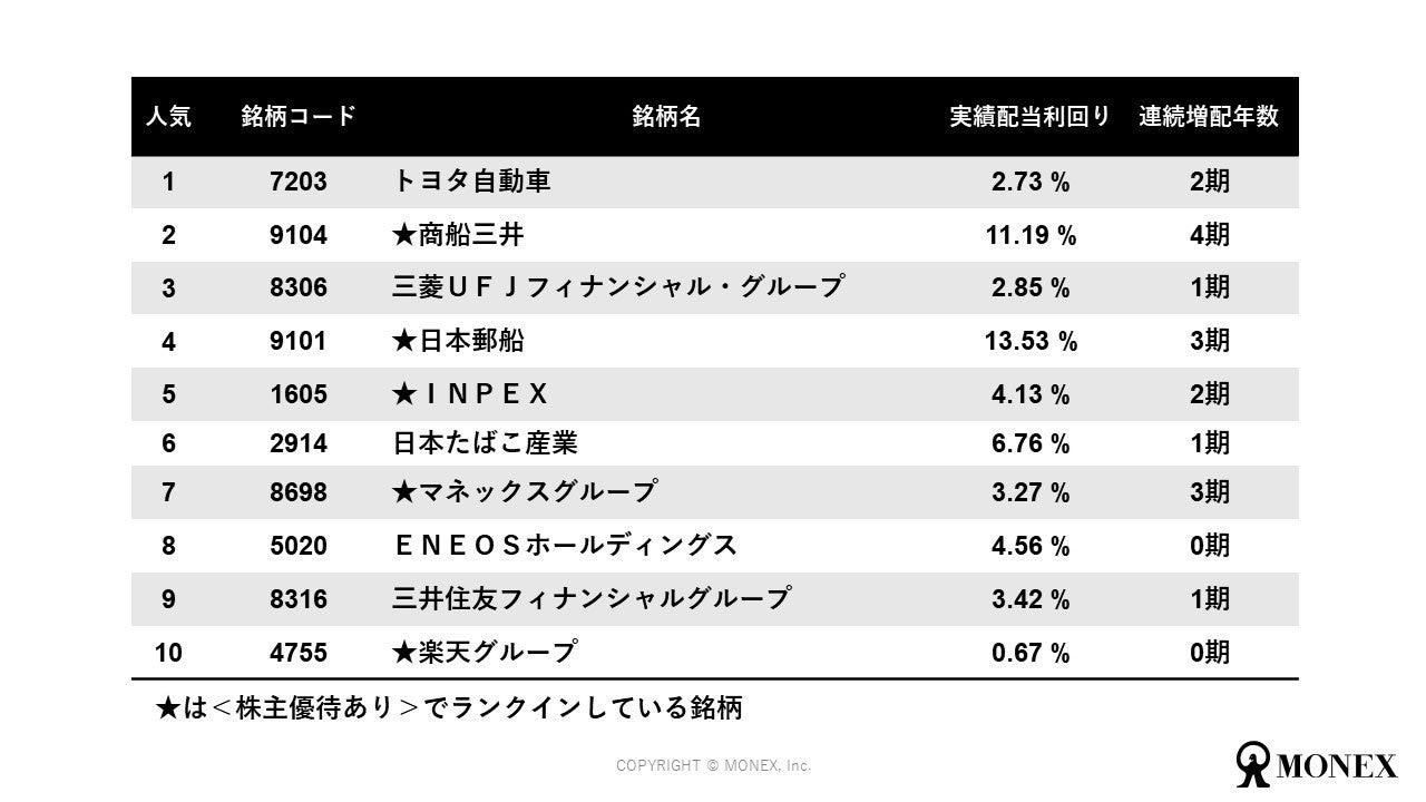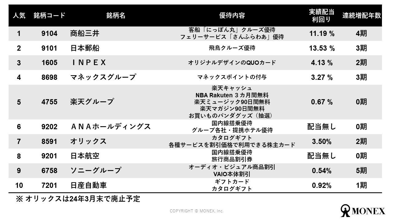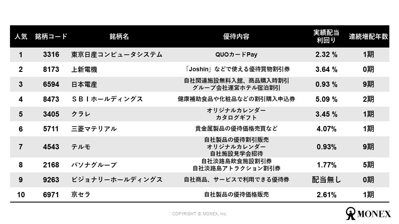 2-1 株主優待のある銘柄人気ランキングTOP10