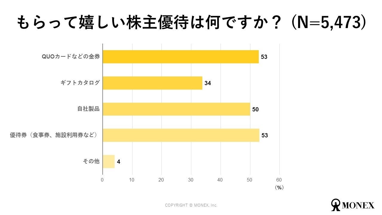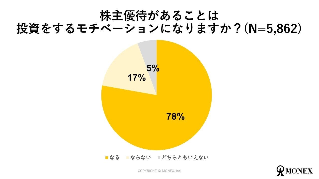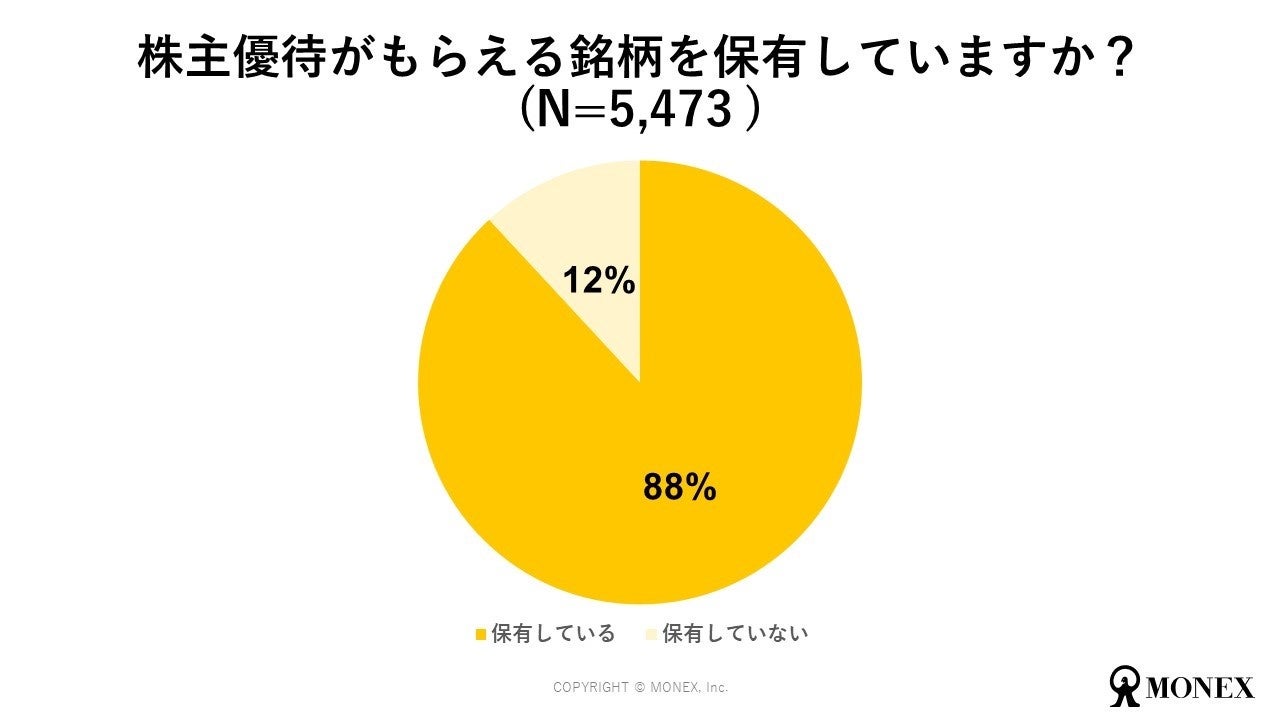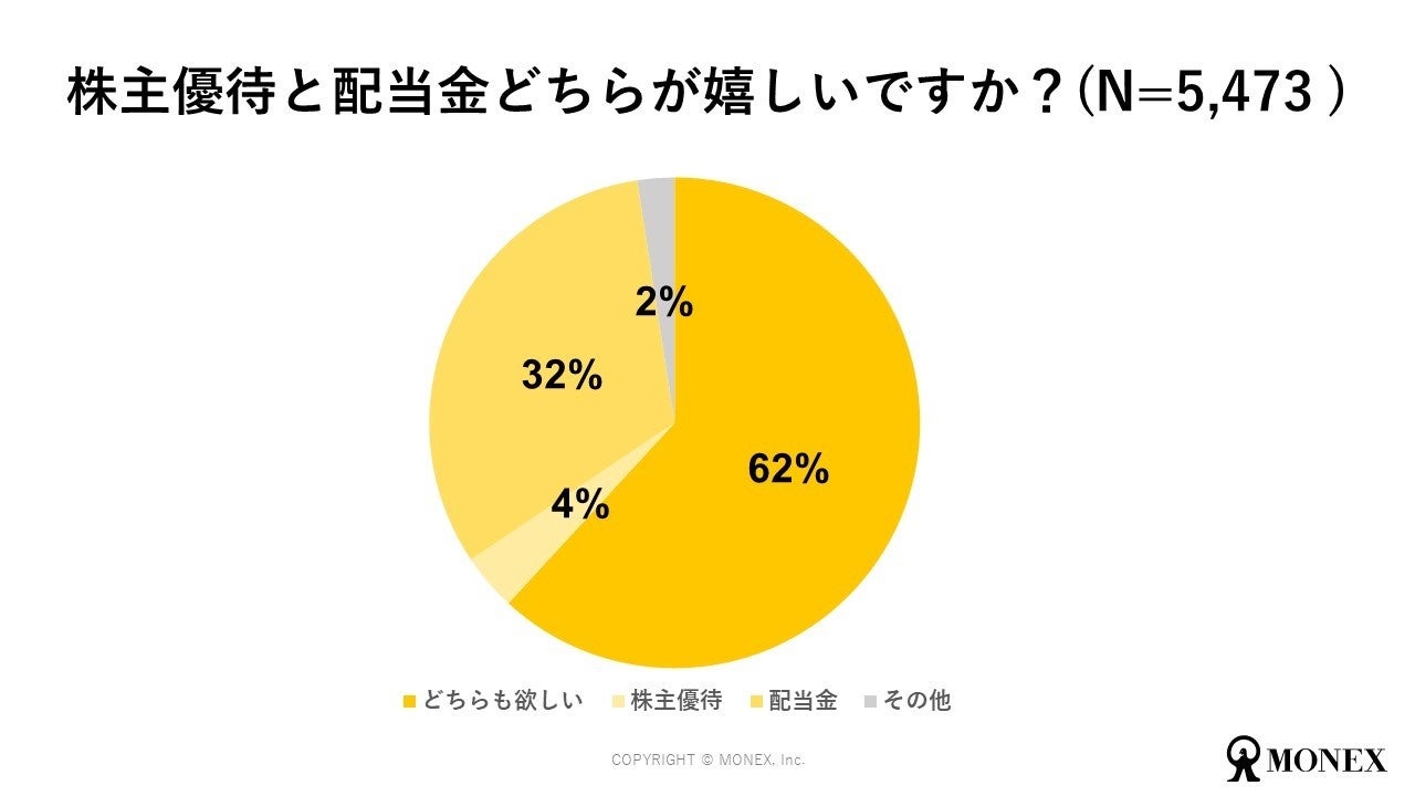 マネックス証券株式会社(本社:東京都港区、代表取締役社長:清明祐子、以下「マネックス証券」)は、株主優待の権利をもらえる企業が1年で一番多い3月を迎え、株主優待と配当金に関する意識調査を実施いたしました。本調査はマネックス証券に口座を保有している方を対象に行い、計5,862名の回答を得ましたのでその結果を公表いたします。