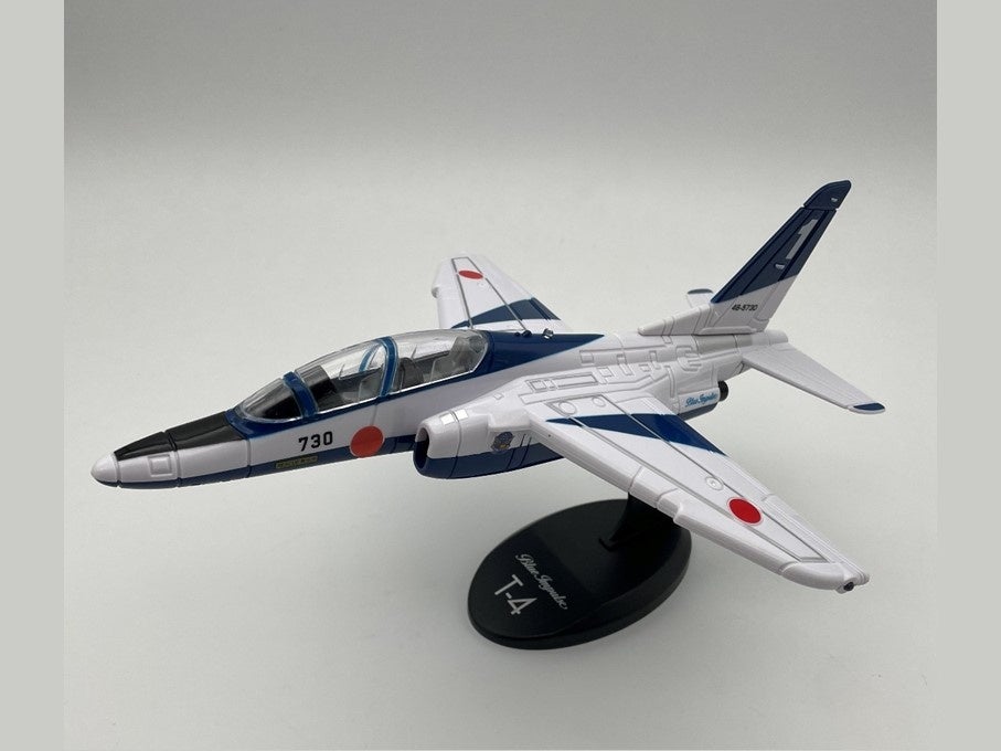 日本が誇る航空自衛隊所属のアクロバットチーム「ブルーインパルス」T-4を実機の1/72スケールで精密に再現。各車輪も付属されており、ランディングバージョンでも展示可能!専用台座付き。