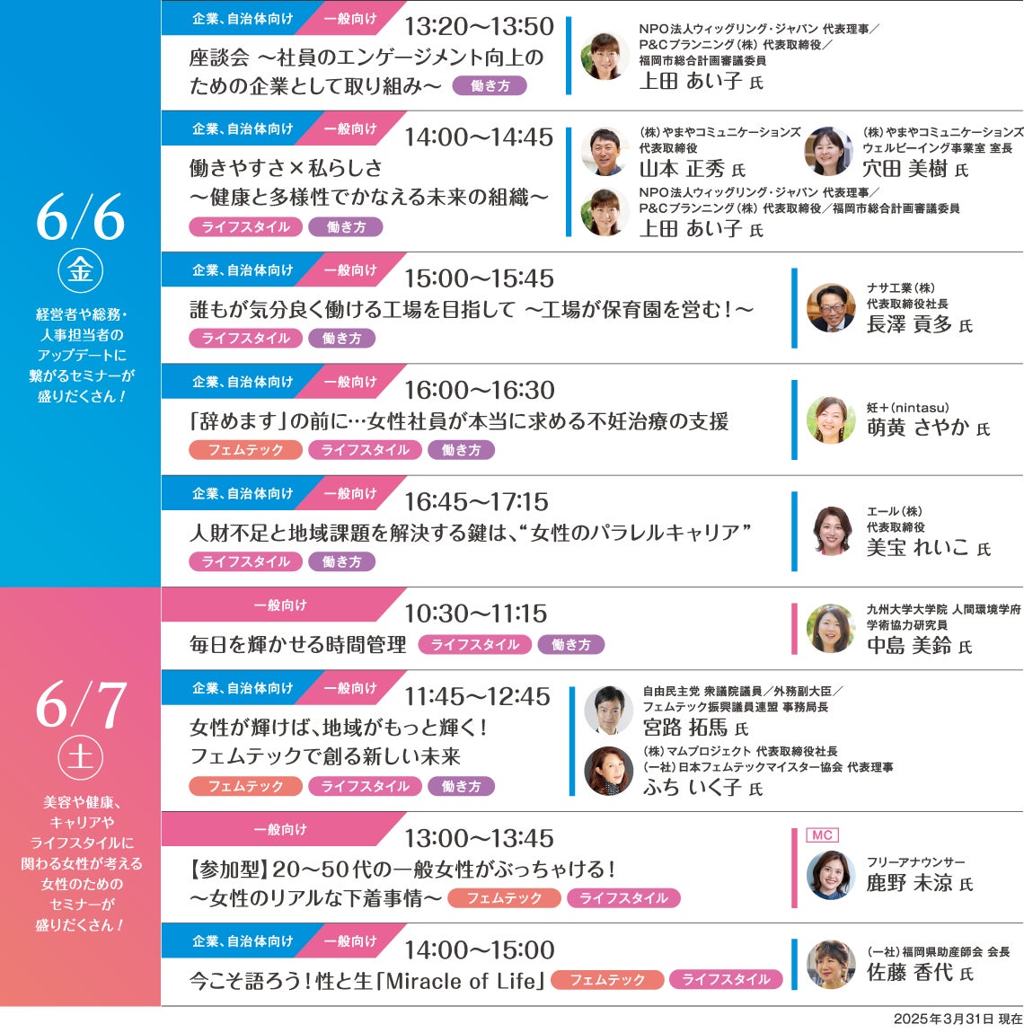 WOMAN Life博 事務局(所在:東京都港区、主催:株式会社イノベント)は、2025年6月6日(金)・7日(土)の2日間、WOMAN Life博にて、セミナー&トークショーを実施いたします。