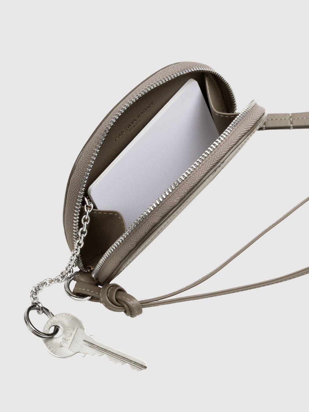 革の切り替えで「TSUCHIYA KABAN」の"T"をさりげなく表現した、上質な仕立てのキーリングカードケース。職人技と遊び心が光る、丸みを帯びた半円形のフォルムが目を引きます。ストラップ付きのため、お手持ちのバッグに取り付けたり、手首に通してぶら下げるなど、アクセサリー感覚でもお楽しみいただけます。