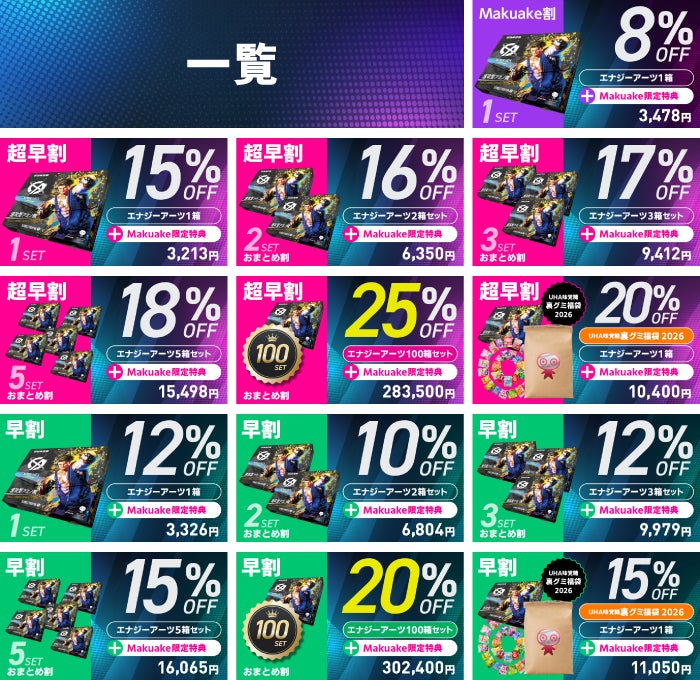 【超早割】15%OFF 3,213円(税込) 「エナジーアーツ」1箱×10包 ◆マクアケ購入特典: 1.闘拳めし ドライブコーラ味 1個 2.ステッカーシール 1枚(全1種) 3.スマホ壁紙 QR(全1種)ほか |