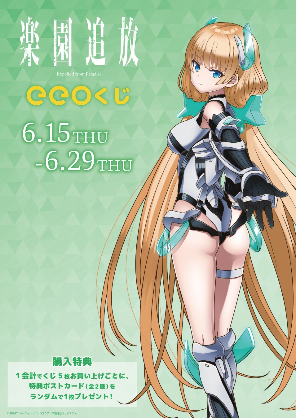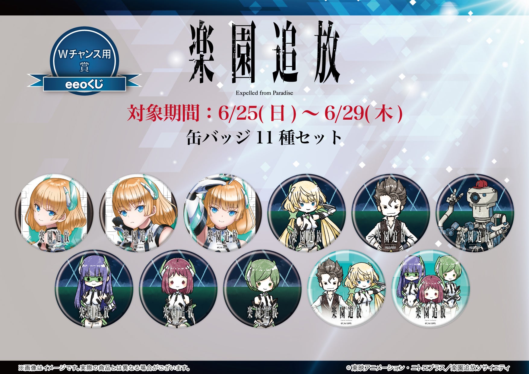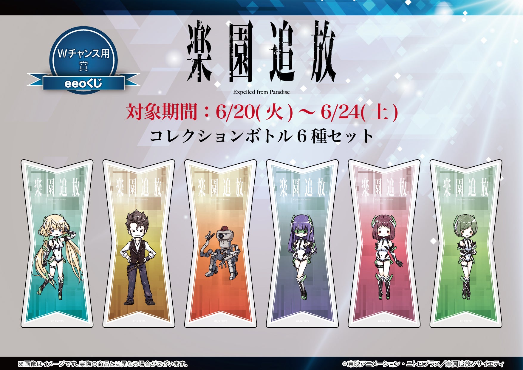 映画公開から9年、練られた重厚な物語とフルCGアニメというハイクオリティな作品として今も多くのファンを持つ『楽園追放 -Expelled from Paradise-』。今回の「eeoくじ」をゲットして、10年目も、そしてその先も不朽の名作である『楽園追放 -Expelled from Paradise-』を応援していきましょう!