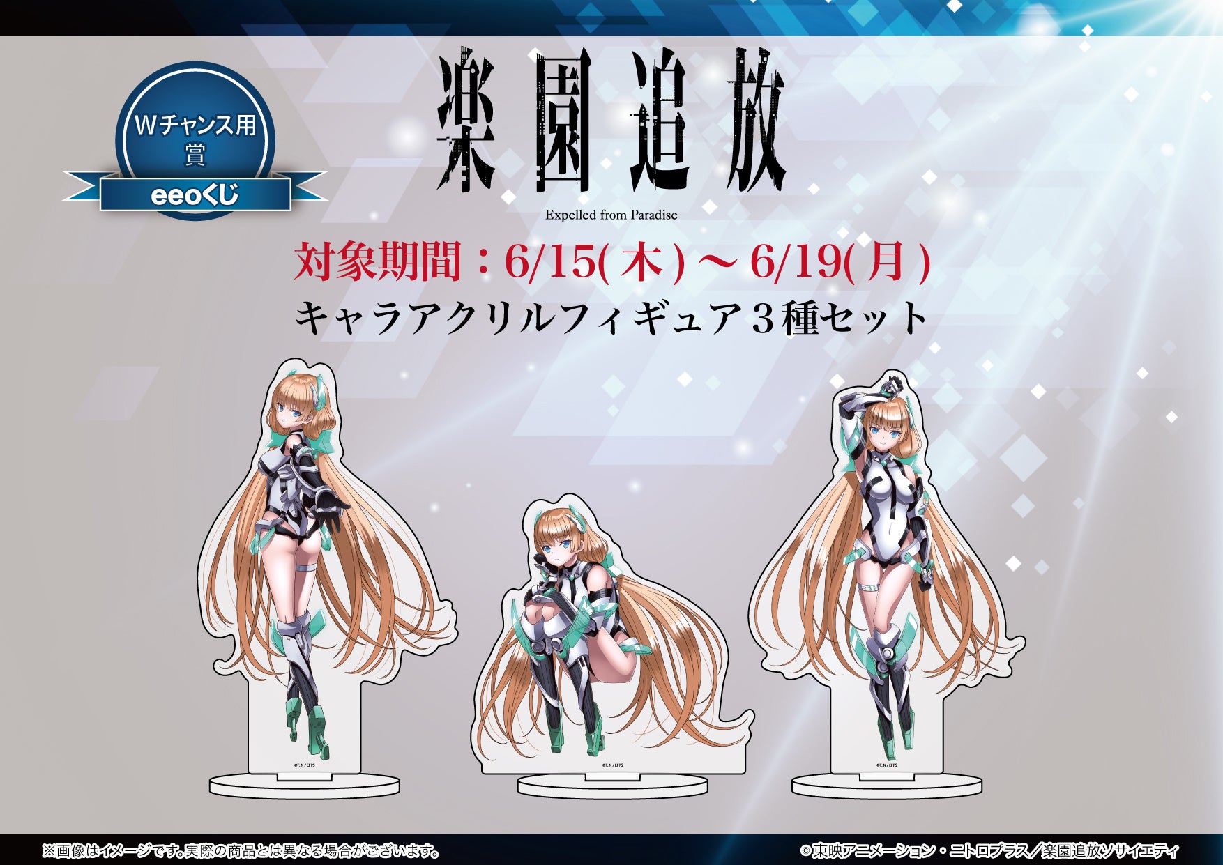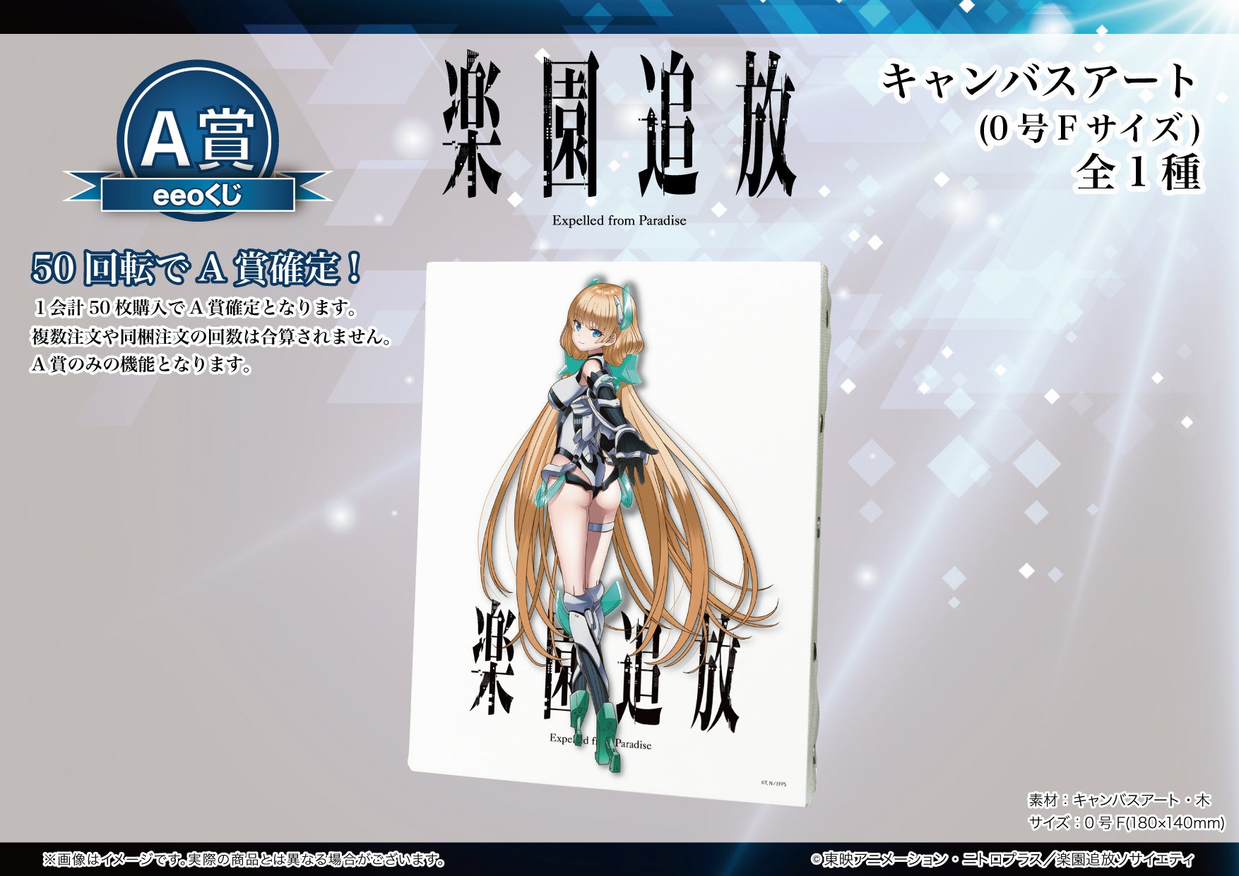 株式会社A3は、アニメ映画『楽園追放 -Expelled from Paradise-』より、オンラインくじ「eeoくじ」第2弾が販売中です。