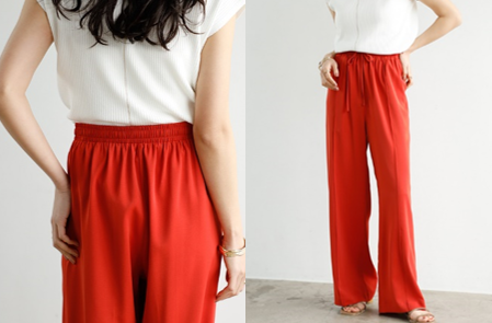 ■特長:着心地もシルエットもリラックス感がありながら、きちんと見える優秀パンツ。落ち感のあるきれいめ素材を使用しているため、高見えします。カジュアルにもきれいめにも合わせやすいシンプルデザインです。