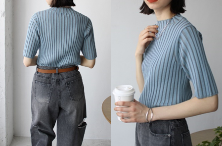 ■特長:今年らしい配色リブデザインのニット。リブ生地のため、伸縮性抜群で心地良く着用いただけます。コンパクトなサイズ感のため、1枚ではもちろん、インナーとしての着回しにもおすすめです。