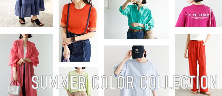 今回は、夏にぴったりな「ブルー」「オレンジ」「ピンク」「グリーン」4色の心ときめくアイテムをご紹介。彩度の高い鮮やかな色味から、爽やかで肌なじみの良い色味まで幅広くご用意しています。コーデの主役になる最旬カラーアイテムで、トレンドをおさえた鮮度の高い着こなしが完成します。