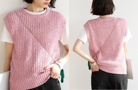 ■特長:適度な透け感とミックスカラーがポイントのメッシュニット。柔らかでさらっとした肌ざわりの涼しげな素材を使用しました。ゆったりとした程よいシルエットで大人の抜け感をプラスします。