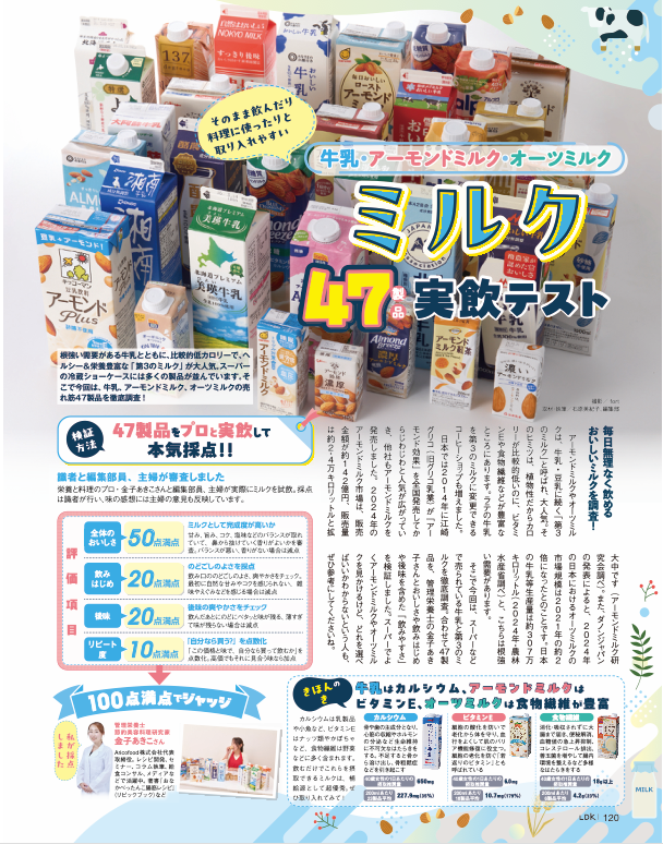根強い需要がある牛乳とともに、比較的低カロリーで、ヘルシー&栄養豊富な「第3のミルク」が大人気。スーパーの冷蔵ショーケースには多くの製品が並んでいます。そこで今回は、牛乳、アーモンドミルク、オーツミルクの売れ筋47製品を徹底調査!