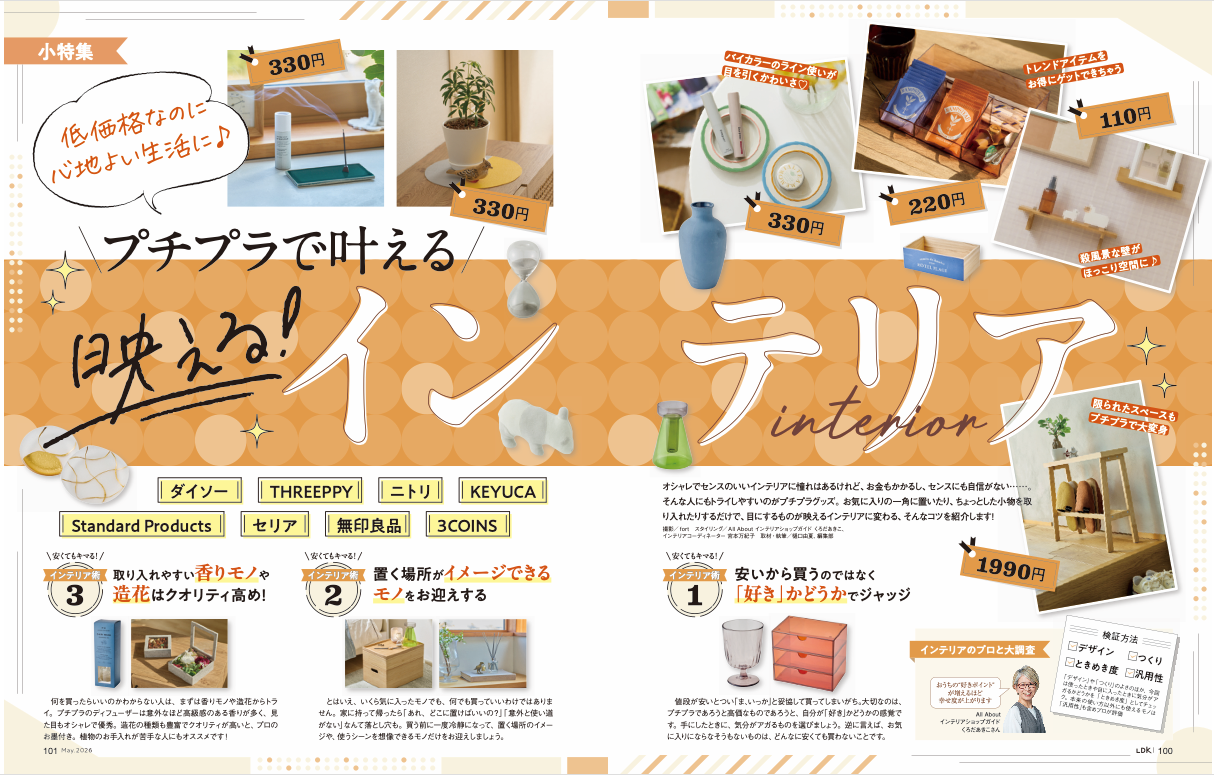 お金をかけずにキレイを叶える「おうち美容」を大特集! アカ抜けるインテリアや小さめ食洗機のおすすめもチェック!!【LDK 2026年5月号】