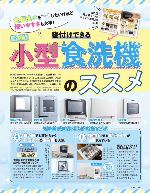面倒な家事の一つでもある食器洗い。食洗機を使いたいけど、備え付けじゃないから、賃貸だからと諦めていませんか? そこで今回は、後付けできる小型の食洗機を徹底テスト。家事の負担を減らしてくれる理想の一台を探します。