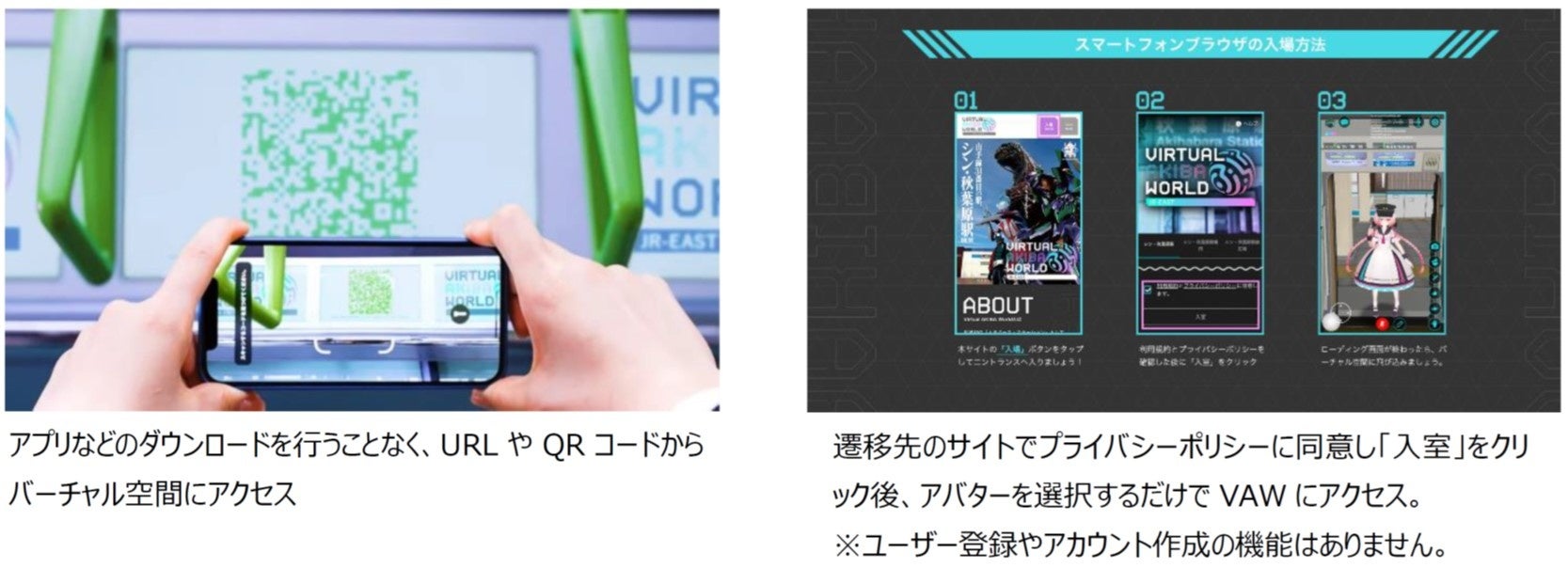 | ○東日本旅客鉄道株式会社(本社:東京都渋谷区、代表取締役社長:深澤祐二、以下「JR東日本」)、株式会社ジェイアール東日本企画(本社:東京都渋谷区、代表取締役社長:赤石良治、以下「jeki」)、株式会社HIKKY(本社:東京都渋谷区、代表取締役CEO:舟越靖、以下「HIKKY」)は、オリジナルのバーチャル空間“Virtual AKIBA World”(バーチャルアキバワールド、以下「VAW」)を、2022年3月25日(金)11:00にオープンします。 ○VAWのオープンを記念して、『シン・ゴジラ』『シン・エヴァンゲリオン劇場版』『シン・ウルトラマン』『シン・仮面ライダー』の4作品によって構成されたプロジェクト「シン・ジャパン・ヒーローズ・ユニバース」とコラボレーションし、コラボレーション期間中は「バーチャル秋葉原駅」から「シン・秋葉原駅」と名付けます。さらに「BEAMS」や「アトレ」とコラボレーションしたコンテンツをリアル・バーチャル双方で展開することで「リアルとバーチャルが融合したビジネス創発拠点」として、これまでにない体験価値をお客さまにお届けします。 |