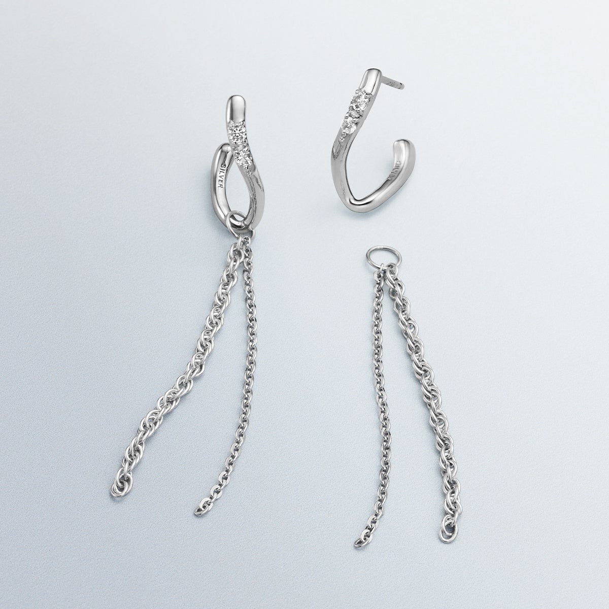 風の流れや波のきらめきをイメージしたジュエリー。爽やかな風の流れを表現したチェーンリングと、波の輝きを思わせるチェーンリングの2種類を展開します。航海のお守りとも言われるアクアマリンをあしらい、新たな一歩を踏み出す勇気をそっと後押しするような想いを込めています。ピアスは風の流れを思わせるラインが揺れ、軽やかな動きとともに耳元で上品に輝きます。チェーンを取り外してフープピアスとしてもお楽しみいただけるアイテムです。
