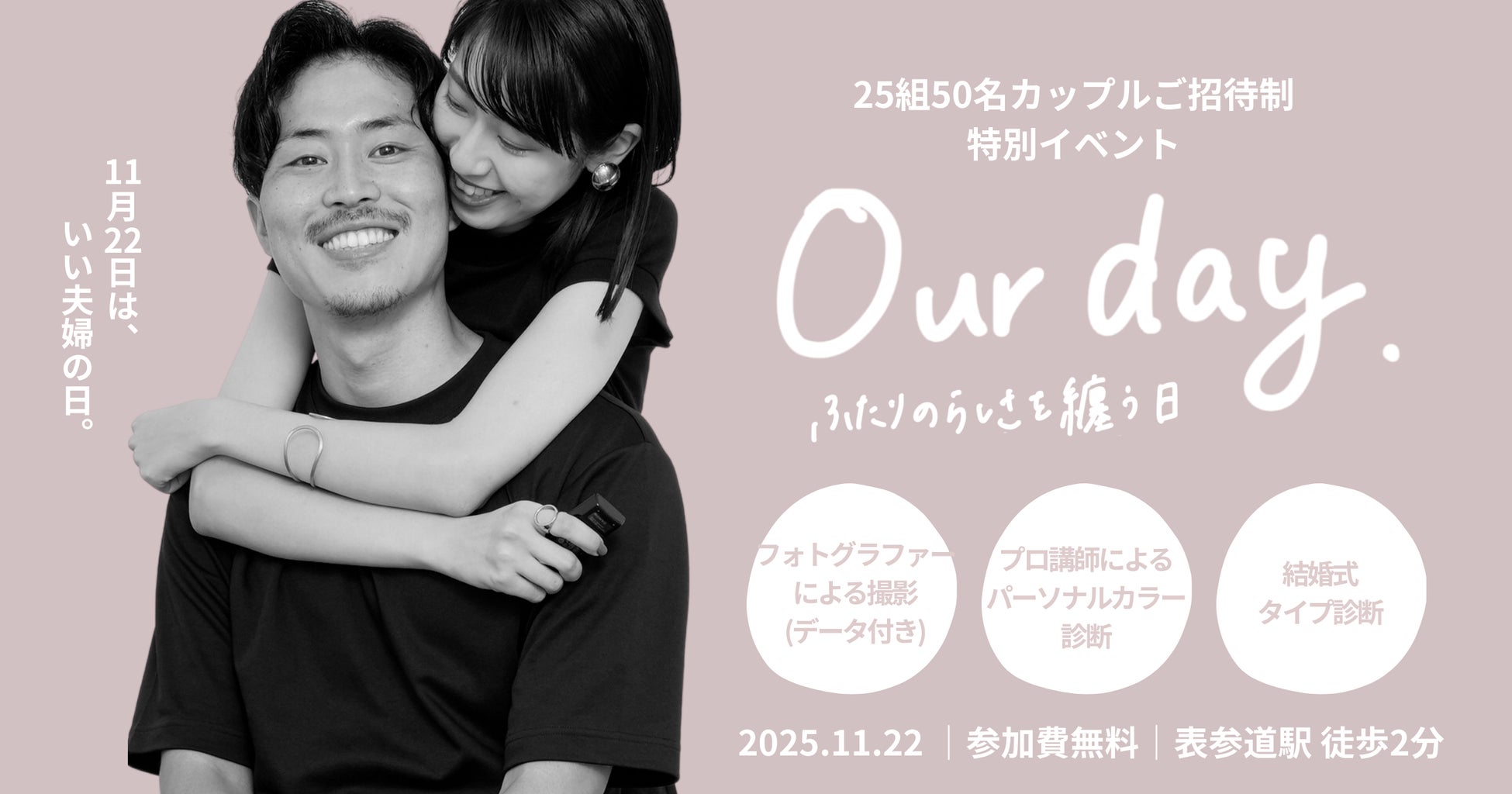 【11月22日は「いい夫婦の日」】25組50名のカップルをご招待する特別イベント『our day. 〜ふたりの“らしさ“を纏う日〜』 無料のフォト撮影体験やパーソナルカラー診断も