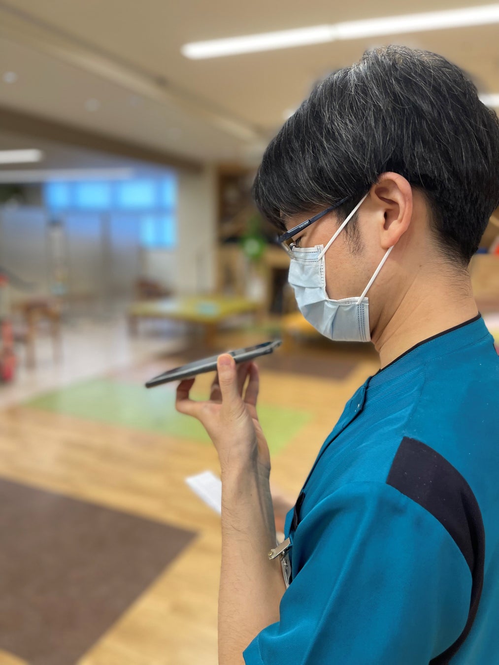 2021年3月から導入した「AmiVoice iNote」はモバイル端末から音声入力ができるため、患者さんの休憩中など隙間時間を活用して、リハビリ記録の入力作業をどこからでも行うことが可能で、現場の業務負担軽減を実現しました。リハビリ記録作成業務や電子カルテ入力にかかる時間は、導入前は5分18秒かかっていましたが、導入により3分8秒と約40%短縮(病院調べ)しました。