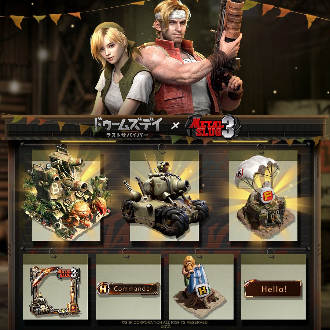 スマートフォン向けゲームアプリのグローバルメーカーIGG(会長兼CEO: Zongjian Cai 香港証券取引所上場 日本所在地:東京都新宿区)は、ゾンビ系戦略シミュレーションRPG『ドゥームズデイ:ラストサバイバー』と『メタルスラッグ3』のコラボ開催の決定をお知らせいたします。