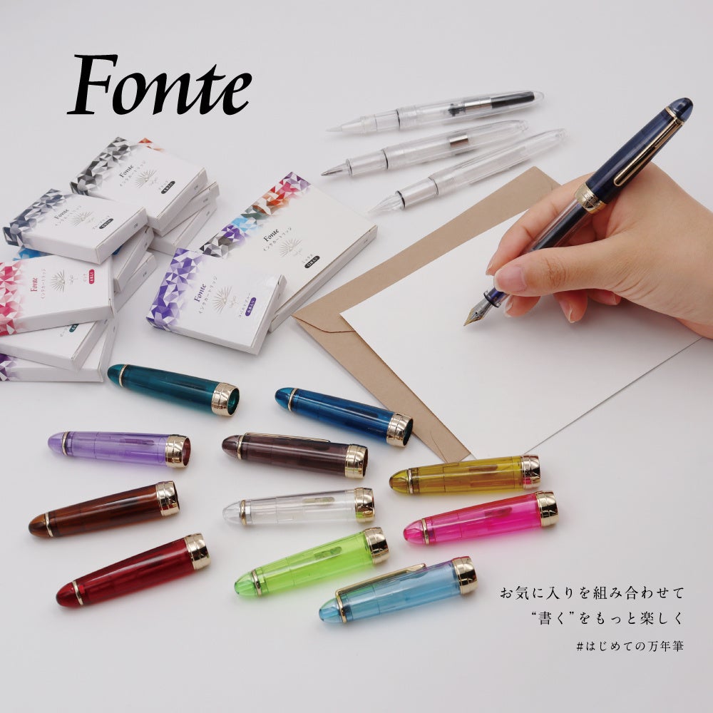 「Fonte」は、好きな色のキャップとインクを自由に選んでカスタマイズを楽しめるスケルトンボディの万年筆を中心としたインクペンブランドで、シリーズ累計出荷数は60万個を突破しています。