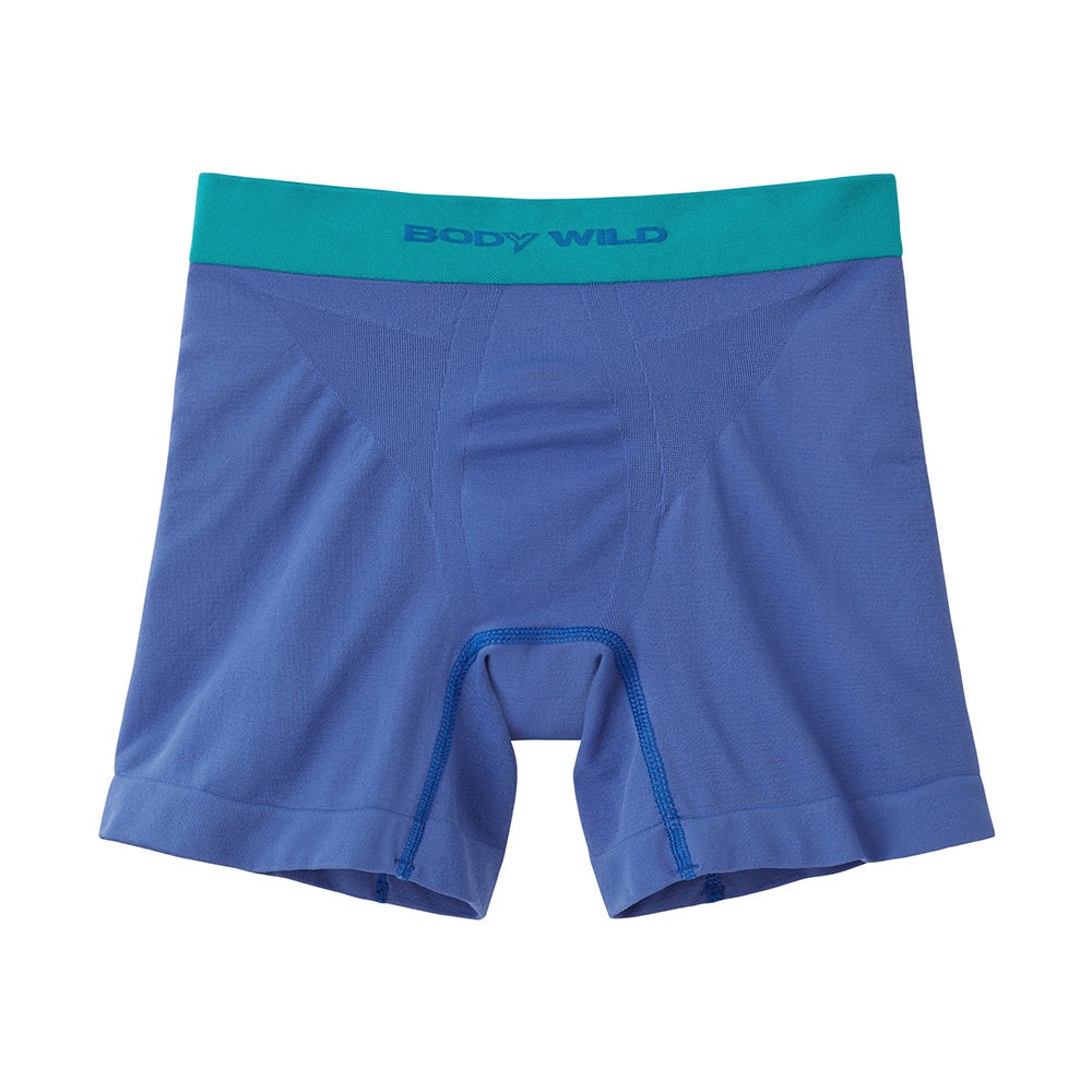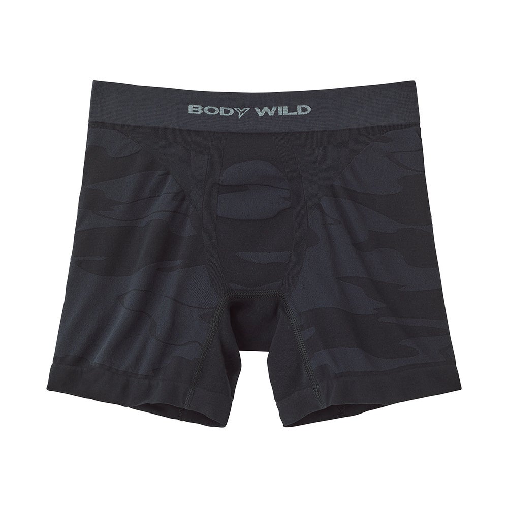 時代と共にBODY WILDも進化!3つの"いい"が詰まったボクサーパンツ。「e-BOXER」は、「BODY WILD」ブランドで過去になかった裾丈がセミロングタイプのスタイルを採用し、美しいシルエットを実現。カッコいい・ココチいい・環境にいいの3つの"いい"を「e」に込めた新グループです。
