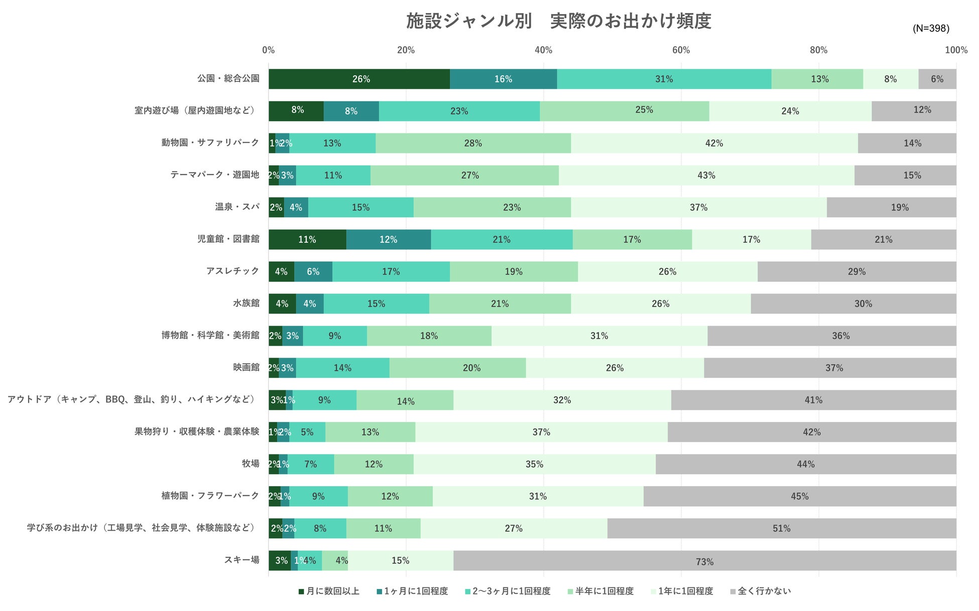 テーマパーク、水族館、アスレチックなどはニーズほど高頻度には行けていない