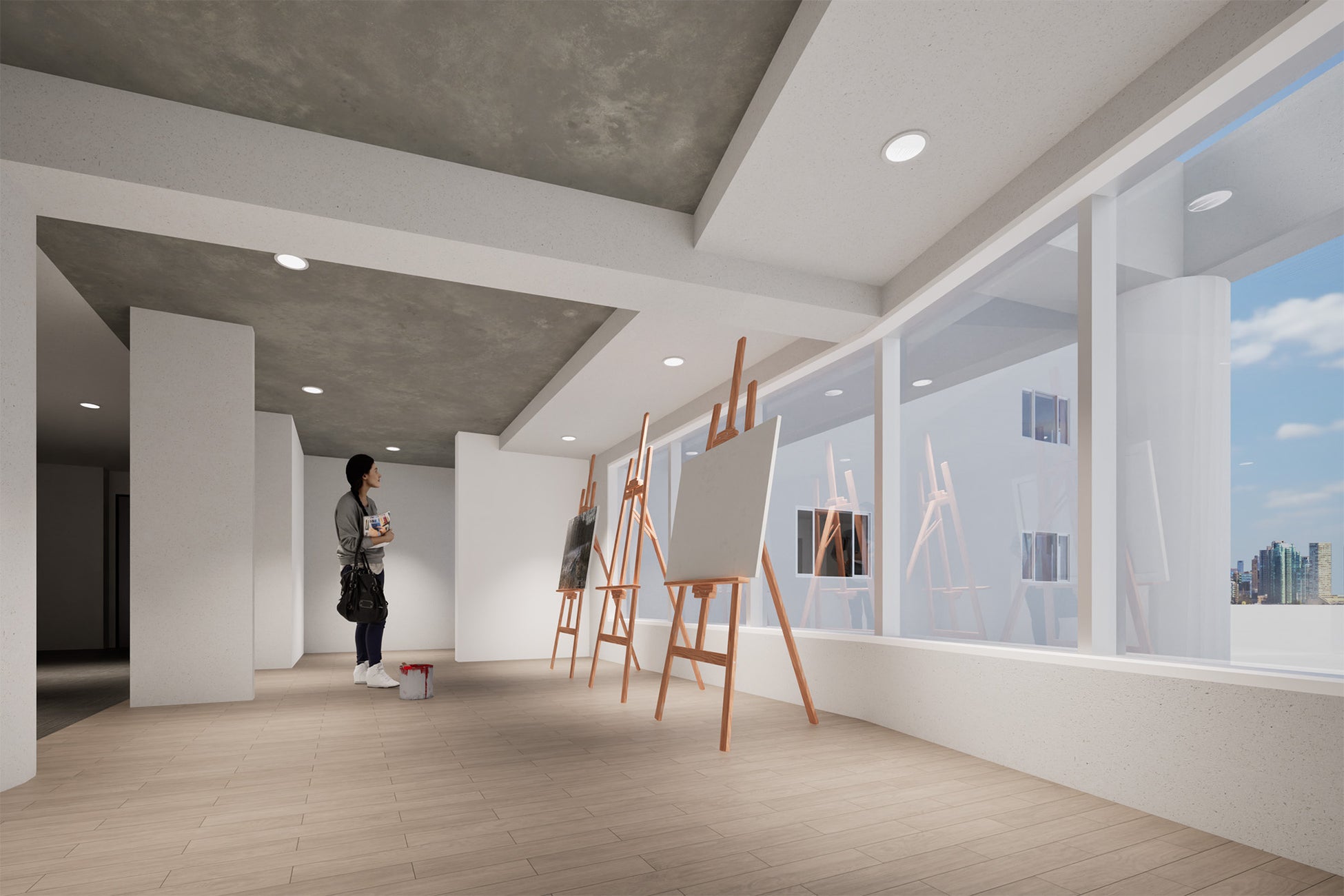 学生の自己実現を支える多彩な共用空間が最大の特徴です。創作活動に没頭できる「アトリエルーム」や、周囲を気にせず演奏に集中できる「防音ルーム」、集中力を高める「ワーキングスペース」を完備し、専門的な学びや趣味を深く追求できる環境を整えました。さらに、心身をリフレッシュさせる「フィットネスルーム」や、開放感あふれる「アウトドアフィールド」など、アクティブな生活を支える設備も充実しています。個々の個性を伸ばしながら、仲間とともに成長できる次世代の住まいを提供します。