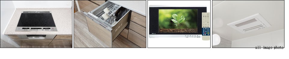 ※左から、IHクッキングヒーター、食器洗い乾燥機、浴室テレビ+リモコン、浴室換気暖房乾燥機
