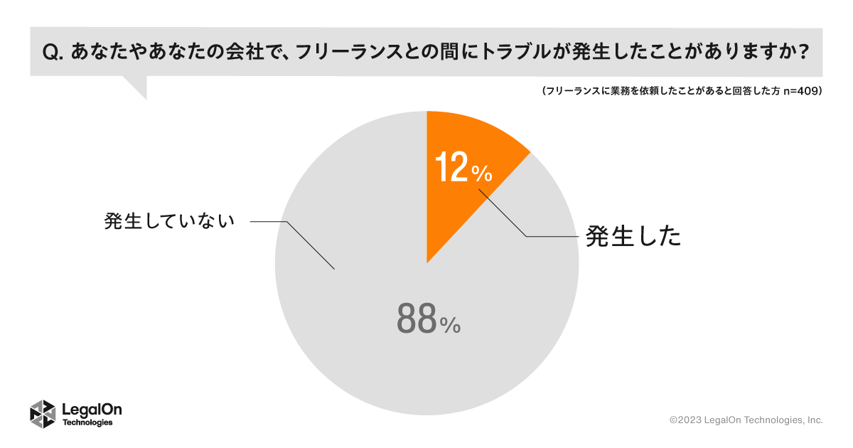 ・フリーランスとの間にトラブルが「発生した」と回答したのは12%