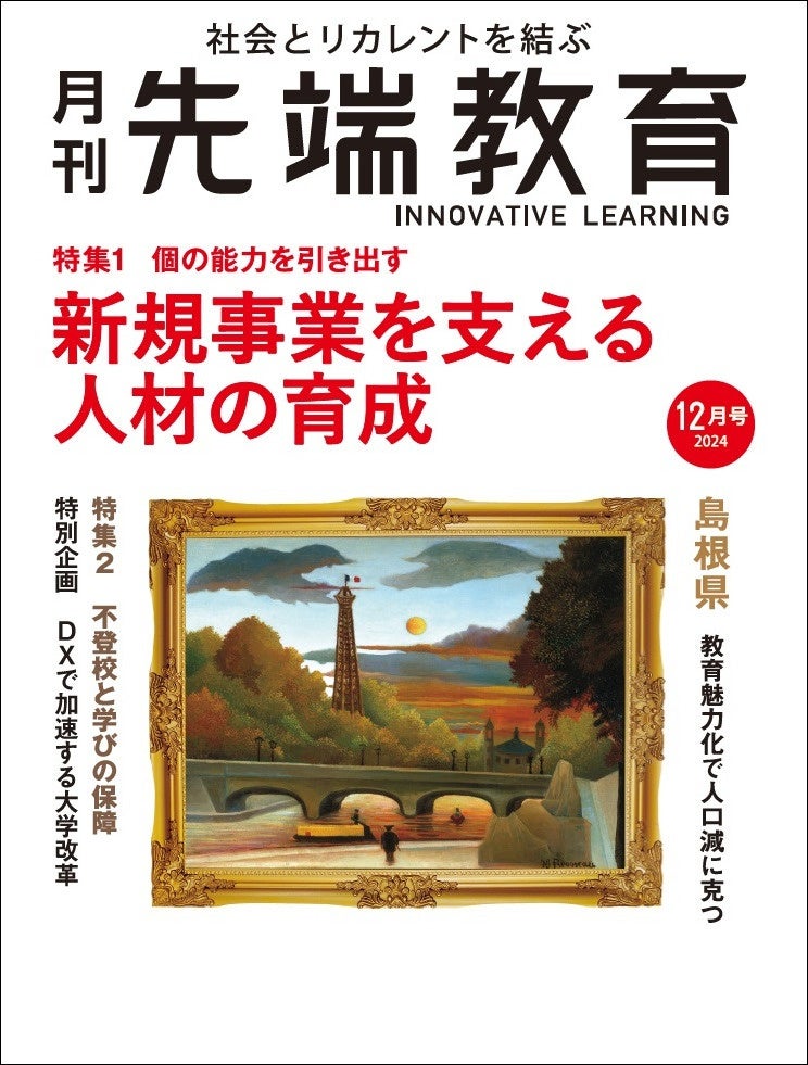 社会人向け専門職大学院の事業構想大学院大学と社会構想大学院大学を運営する学校法人先端教育機構(東京都港区、理事長:東英弥)出版部は、社会とリカレントを結ぶ教育専門誌「月刊先端教育」2024年12月号を11月1日(金)に発売しました。(https://www.sentankyo.jp/)