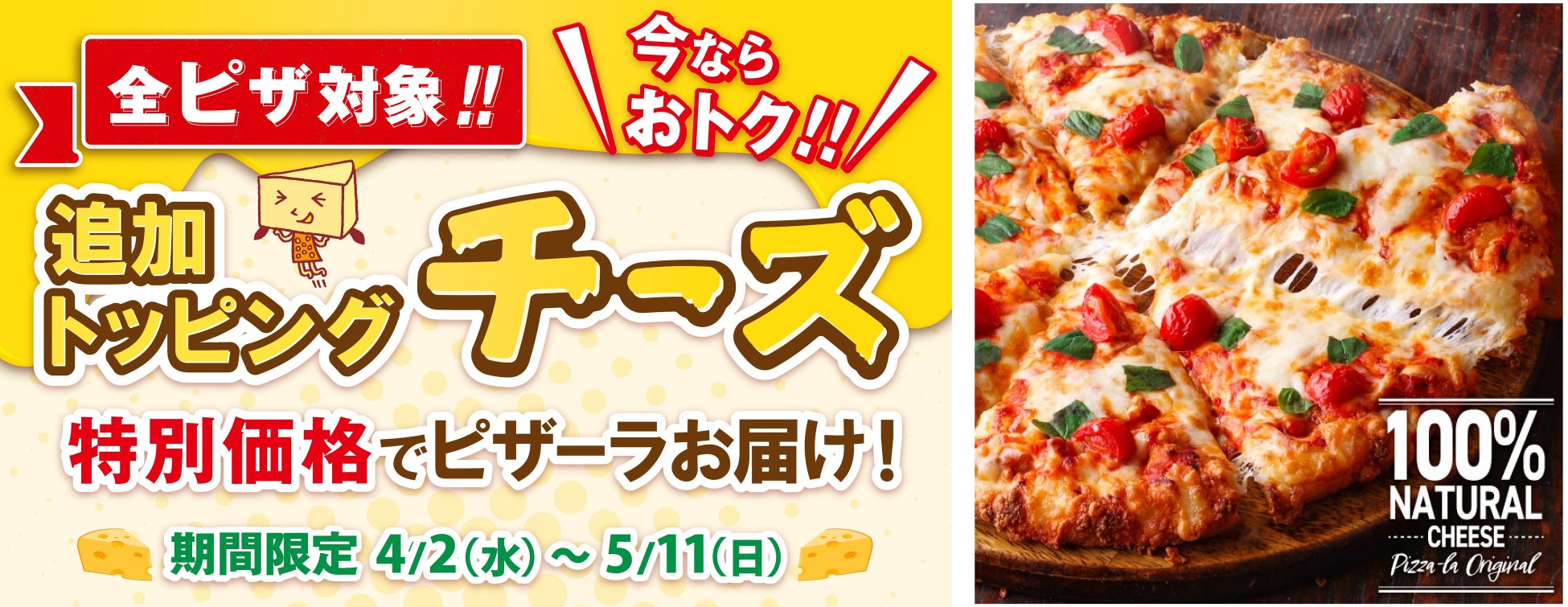 株式会社フォーシーズ(本社:東京都港区南青山 代表取締役会長兼CEO:淺野幸子)が展開する宅配ピザ「PIZZA-LA」は2025年4月2日(水)から、追加トッピング「チーズ」を特別価格で提供するキャンペーンを実施いたします。