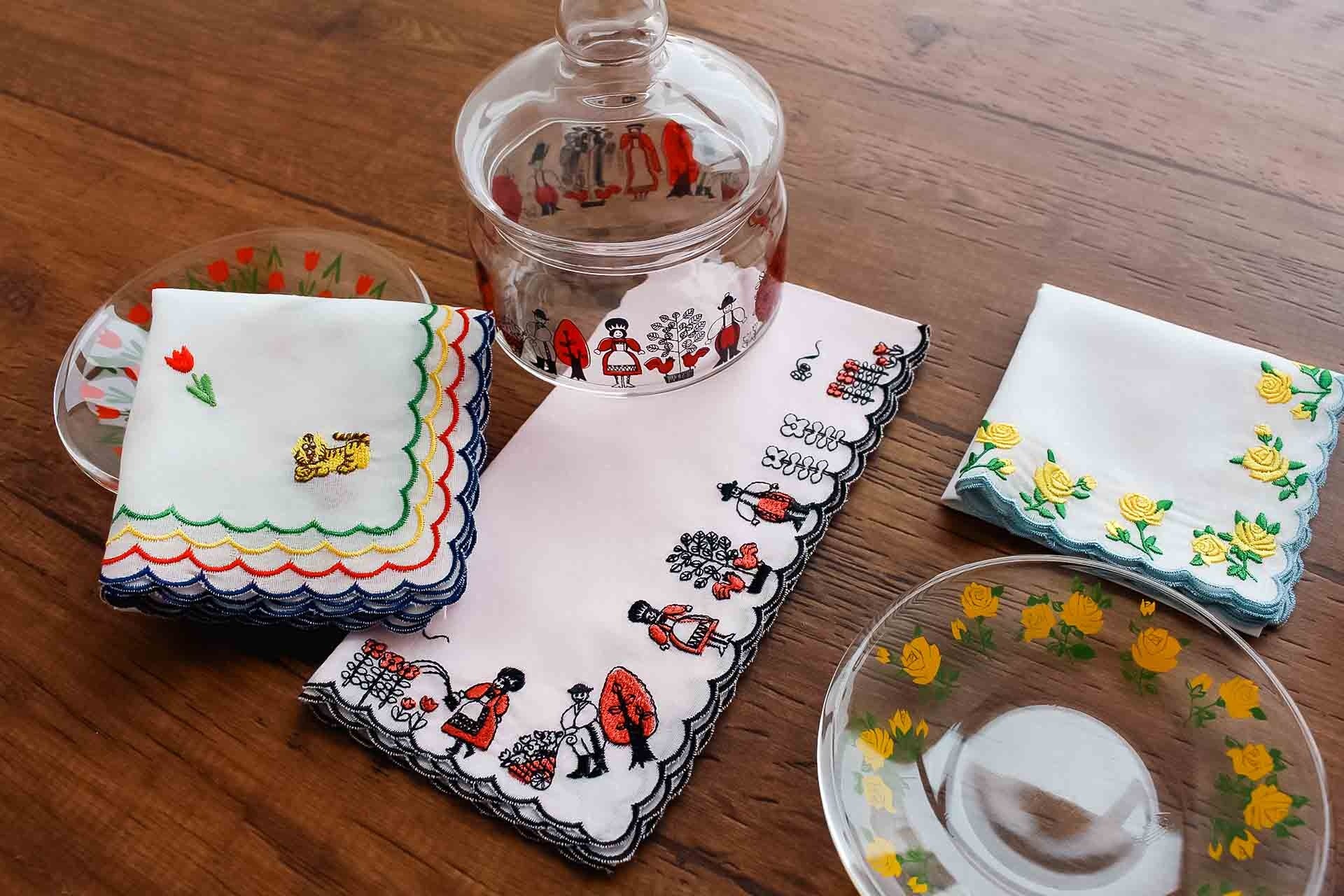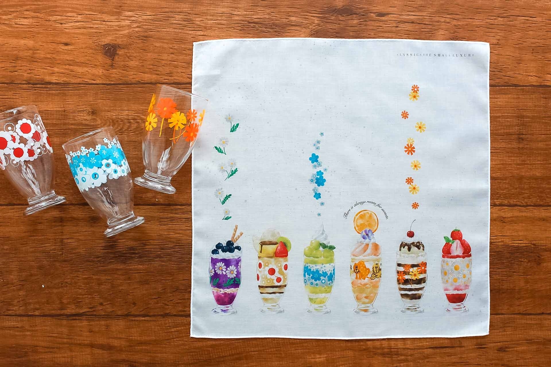 昭和の懐かしさと可愛らしさを詰め込んだレトロガラス食器「アデリアレトロ」と、ハンカチーフ専門店「CLASSICS the Small Luxury」による、初のコラボレーションハンカチーフが登場。「アデリアレトロ」がもつレトロで懐かしい世界観と、ハンカチのどこかノスタルジックな魅力。どちらも日常を彩る“身近な存在”、その親和性から今回のコラボレーションが誕生しました。アデリアレトロのモチーフを、ガラスとは異なる布ならではの質感や表情で表現し、持ち歩けるファッションアイテムとしてデザインしました。子どもの頃の思い出や懐かしさを、毎日に寄り添うハンカチに込め、可愛らしさの中
